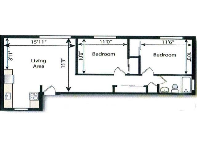 2 Dormitorios, 1 Baño, 750 pies²Galería del Modelo