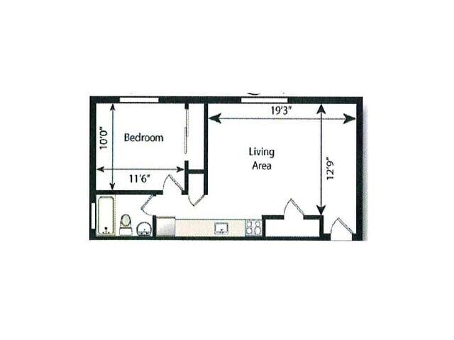 Modelo de apartamento: ARCTURUS1 Dormitorio, 1 Baño, 550 sq ftNo Disponible![]()