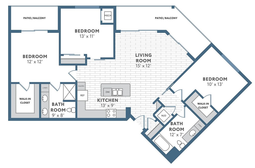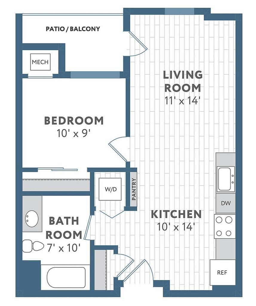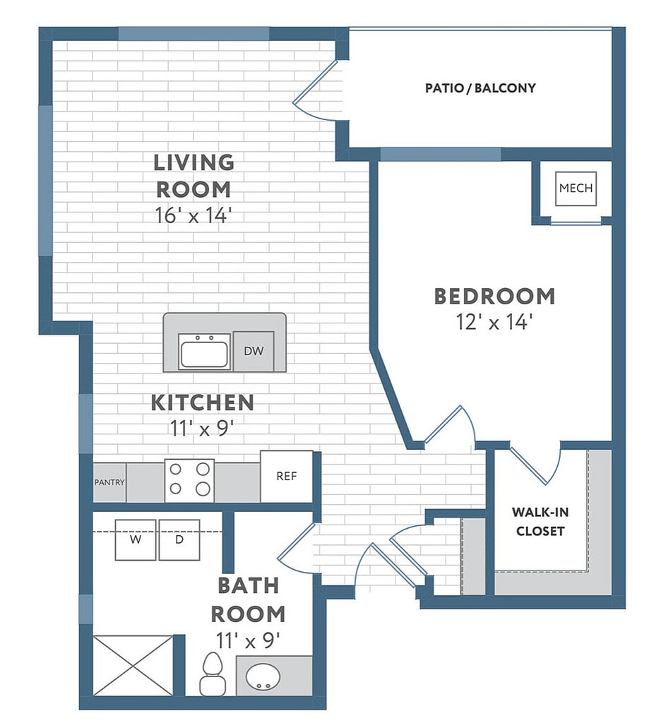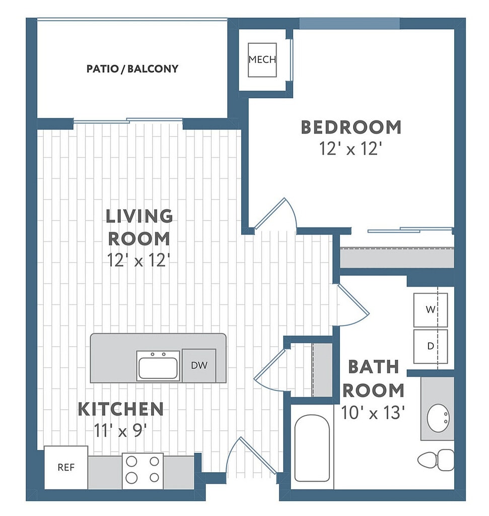 Modelo de apartamento: B2Desde $1,4501 Dormitorio, 1 Baño, 702 sq ftDisponible AhoraPlanos3D Tours![]()