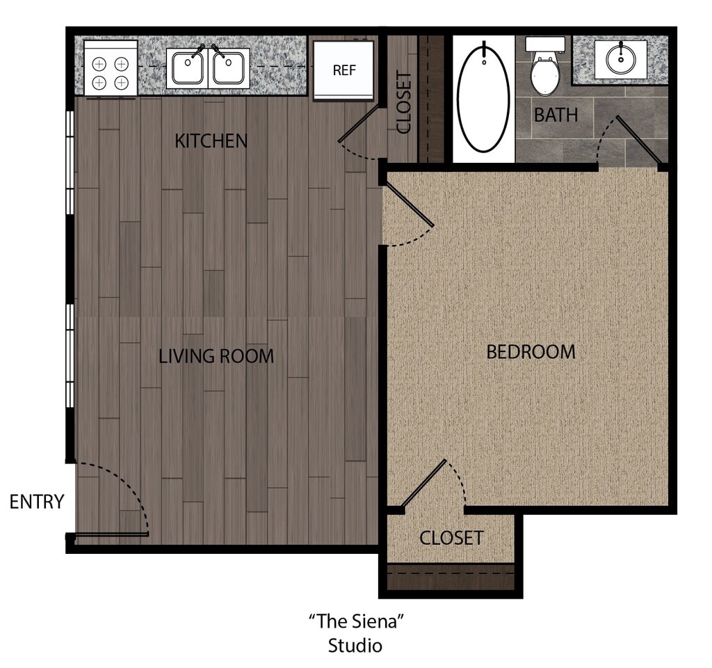Modelo de apartamento: The Siena1 Dormitorio, 1 Baño, 456 sq ftDisponible January 2, 2026![]()