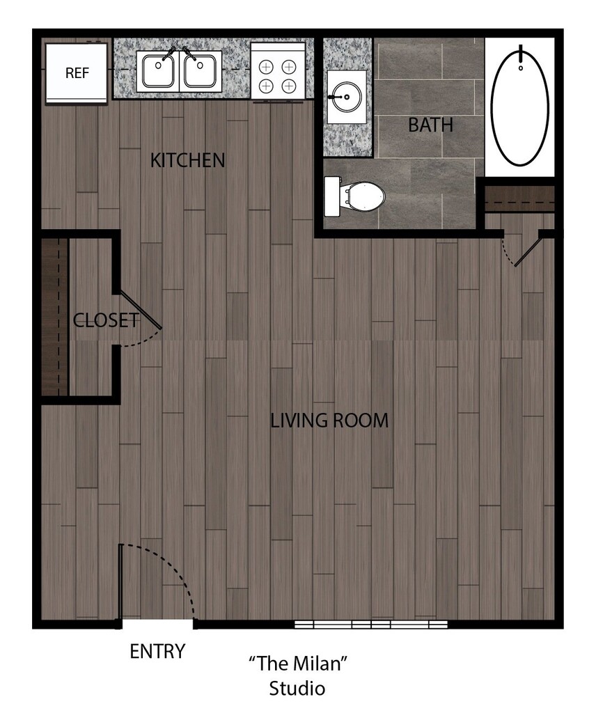 Modelo de apartamento: The MilanEstudio, 1 Baño, 326 sq ftDisponible Ahora![]()