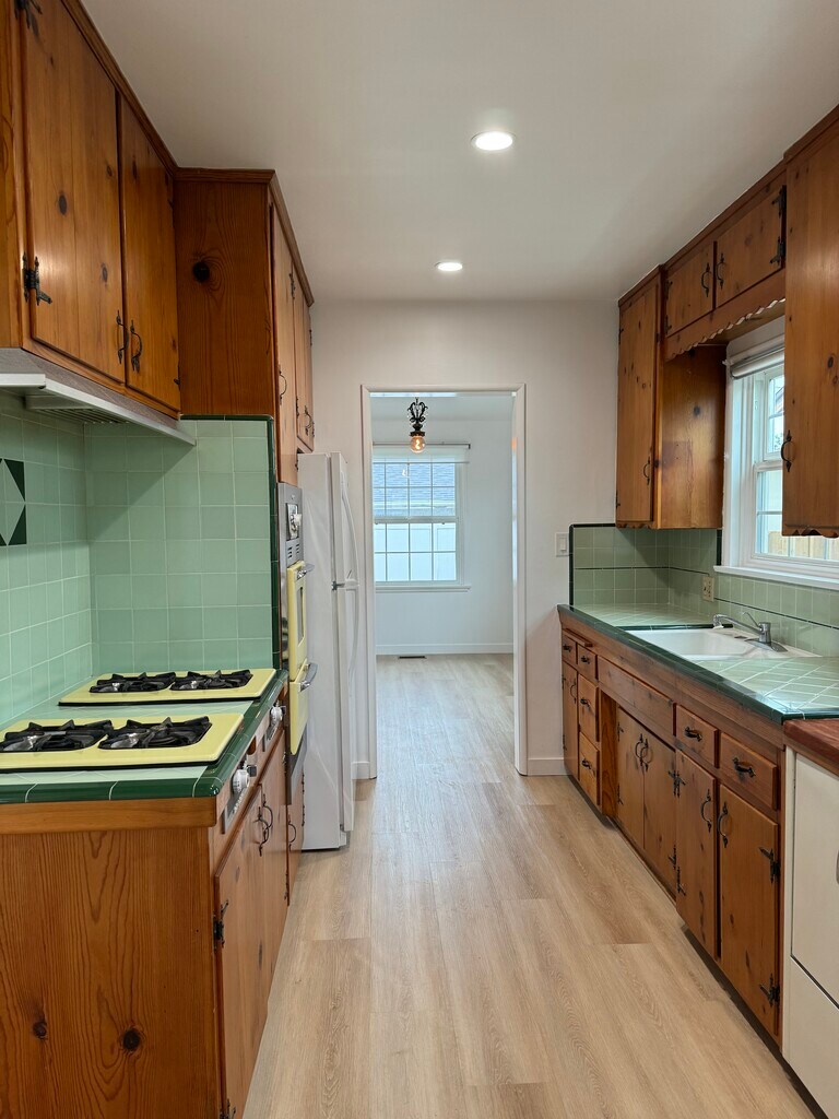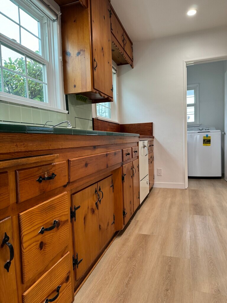 Charming 3 bedroom, 2 bath house for lease in Canoga Park, Woodland Hills adjacent! This inviting home features hard surface flooring, recessed lighting throughout, renovated primary bathroom, fresh paint, and a new roof. A cozy fireplace adds warmth and ambiance to the living area. Central Air and Heating. Laundry room inside with washer/dryer. Kitchen features a refrigerator. Enjoy the covered patio for entertainment. Located within walking distance to the renowned Topanga Westfield Mall, close to the Village, Restaurants and Costco with easy access to the freeways. This property offers a perfect blend of comfort and accessibility. One small pet allowed. Don't miss the opportunity to make this beautifully updated house your new home!
