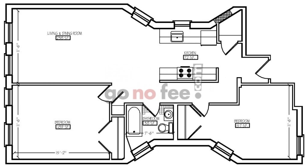 2 Dormitorios, 1 Baño, 765 pies²Galería del Modelo