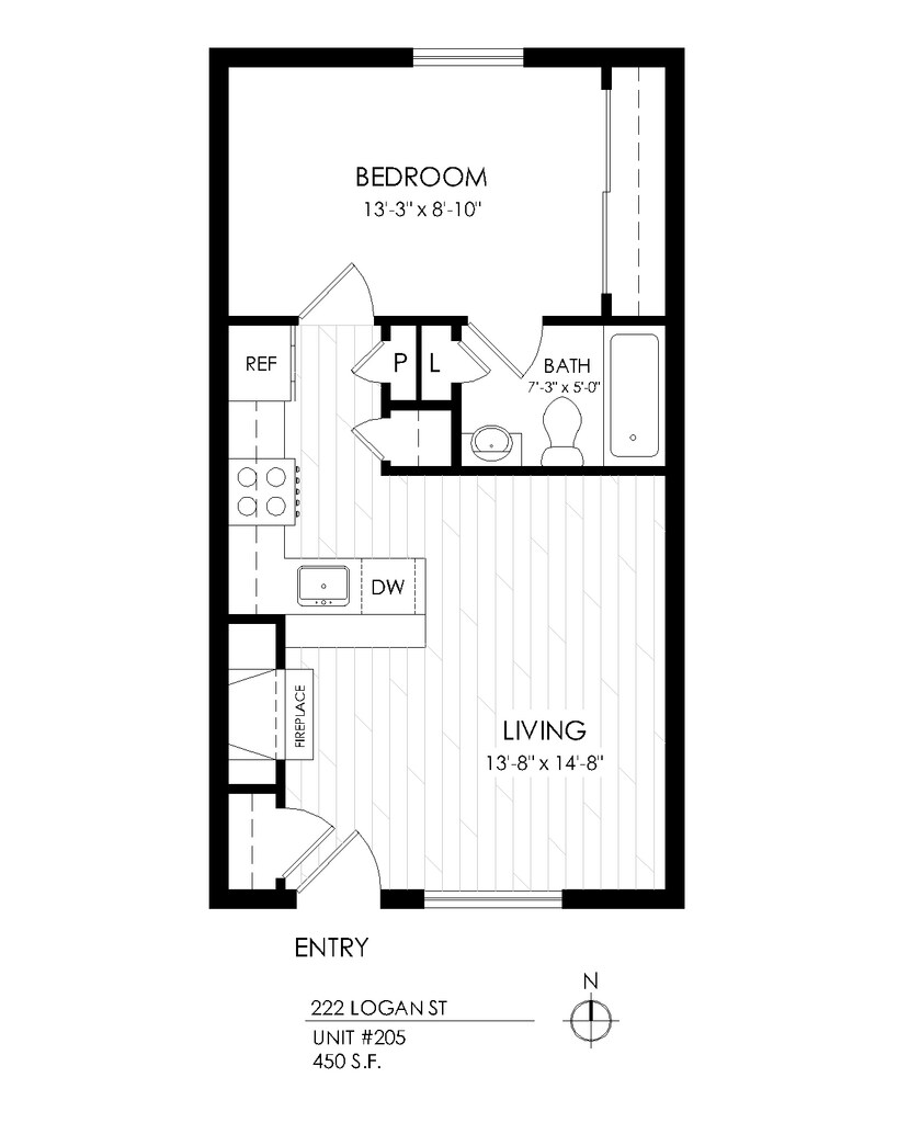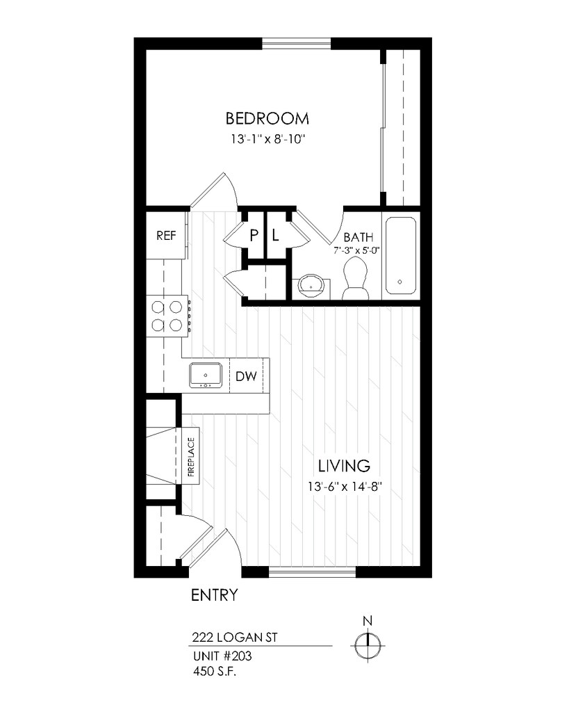 2 Bedrooms, 1 Bath - Plano 4 Unidad de apartamento: 101Modelo de apartamento: 2 Bedrooms, 1 Bath2 Dormitorios, 1 Baño, 570 sq ftDisponible Ahora![]()