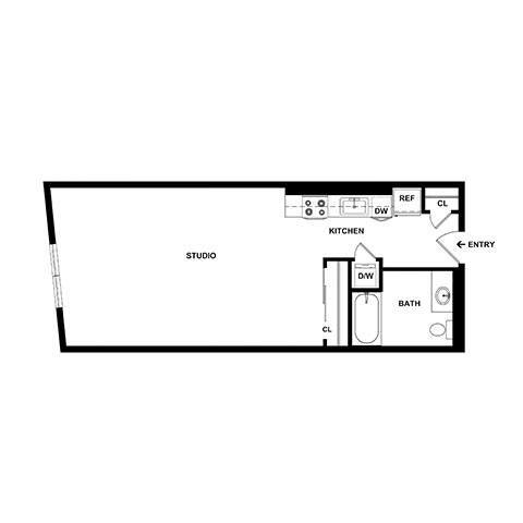 Estudio, 1 Baño, 594-604 pies²Galería del Modelo