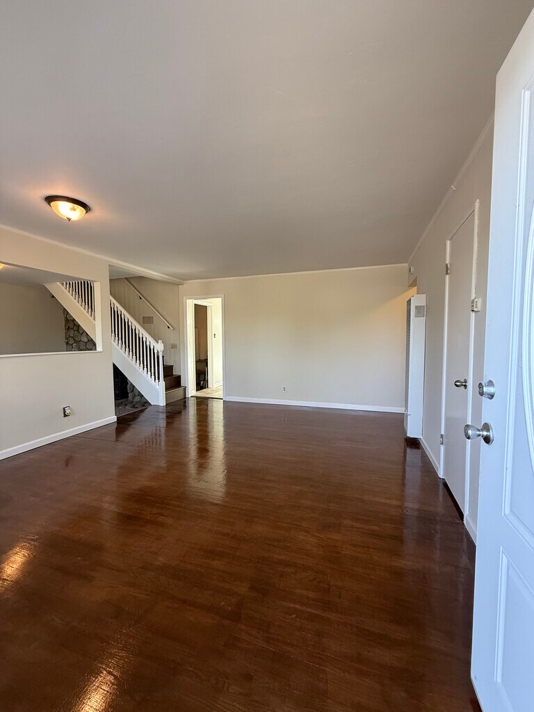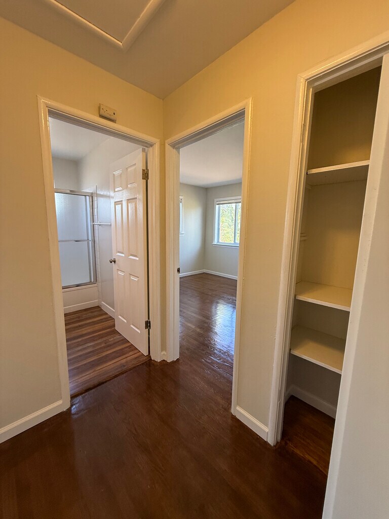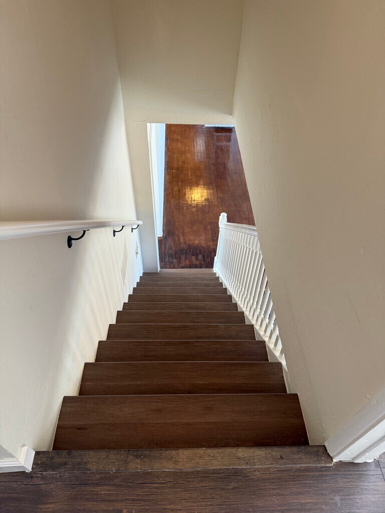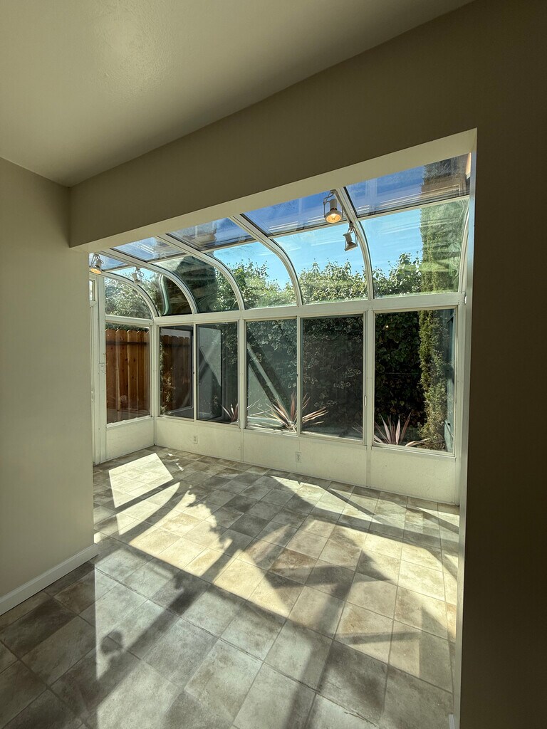 Welcome to your next home! This spacious and freshly updated 3-bedroom, 2-bathroom unit in a charming duplex is move-in ready and full of character. Step inside to a bright and airy living room with a dedicated dining area or den featuring a decorative fireplace, perfect for relaxing or entertaining. The updated kitchen includes black countertops, kitchen appliances, and opens into a beautiful sunroom. Just off the kitchen, you'll find a large utility room with laundry appliances and plenty of room for storage. The main level also offers two bedrooms and a full bathroom, while the upstairs is dedicated to a private primary suite. Enjoy the natural light from the skylights and an updated en-suite bathroom with a brand-new shower. Out back, the private yard is cozy and great for small gatherings. The front yard is impressively large, beautifully landscaped with drought-resistant plants, easy to maintain and environmentally friendly. Don't miss out on this unique and spacious home. Schedule a tour today and make it yours! Tenant must cover PG&E and trash utility costs. Owner pays for Water utility. Tenant must carry renters insurance and handle landscaping.