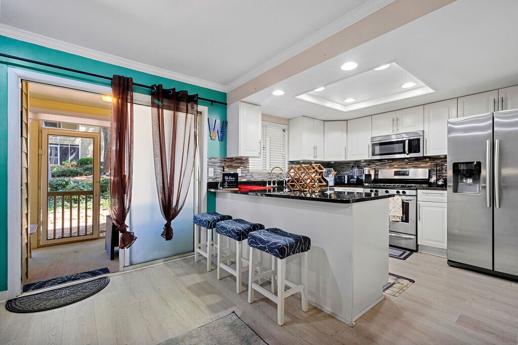 Excellent location! The Braves Stadium and Smyrna Village are only a few minutes away. I-75 and 285 are easily accessible. This great, ALL THE WAY FURNISHED, move-in ready 2 bed/2 bath garden-level apartment has an open floor plan, beautiful white kitchen (soft-close cabinets), gas fireplace, separate laundry room, crown molding, and plenty of natural light. The condo features two large bedrooms with en-suite bathrooms and a walk-in closet. The rear screened-in porch provides additional living space and outdoor storage. Swim/tennis, a clubhouse, a lake and a dog park are among the amazing features. You don't have to worry about moving furniture because it has everything you need. 3 TVs in the house, smart lock, utensils and everything else you can think of. Everything you see you will have the optional to use while living there. Move ready! Prepare to fall in love.