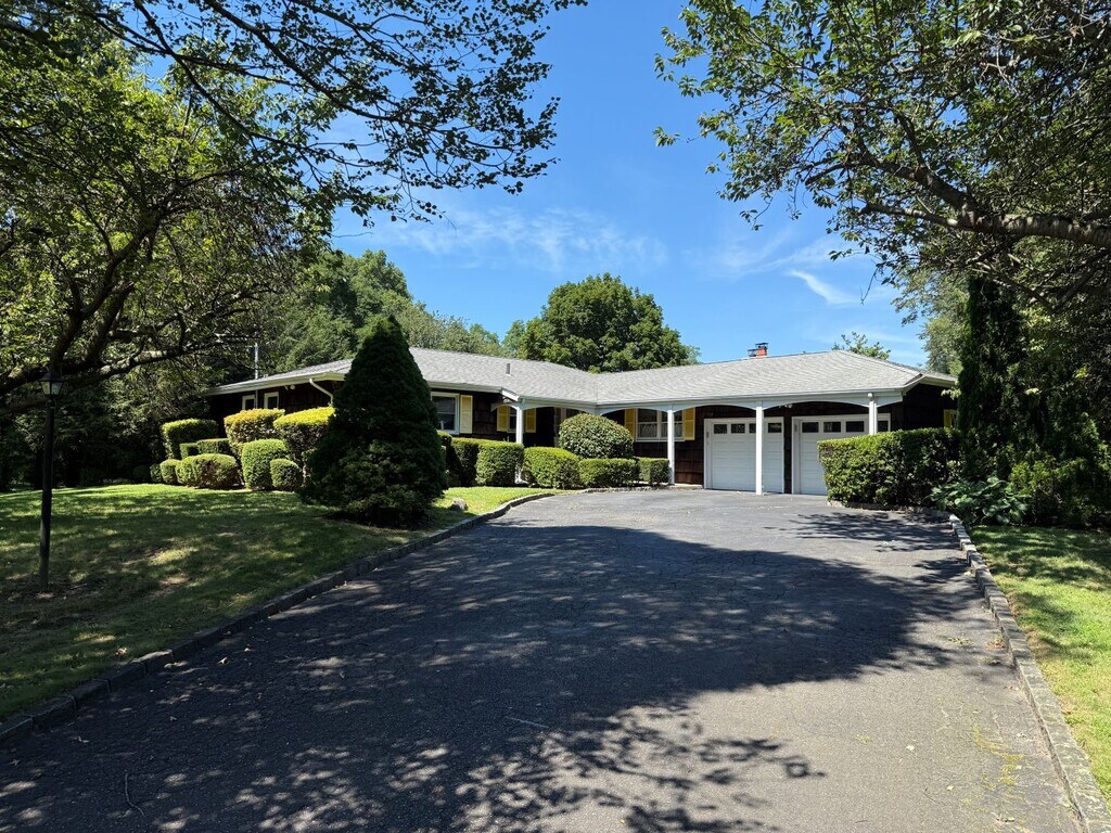 reduced Broker Fee! South Huntington- Located in Point of Woods on an Acre property near Dix Hills, this is a spacious Mid Century modern Ranch, w/ CAC, 3 BR 2 baths, + 2 car garage. Entry foyer into large open Living room with wood burning fireplace, Dining room with sliding glass doors out to the back patio, large Kitchen with all the appliances, all with Oak floors. Huge utility room with laundry and doors to the 2c garage + driveway. The other side of the home has the bedrooms, all with oak floors, King BR suite with shower bath, long hallway down to the other 2 bedrooms + full bath. Unique open stairs down to the finished basement. Just minutes to the hi-ways and shopping. Lawn Maintenance Included. Friendly dog or cat considered. Tenant pays all utilities.