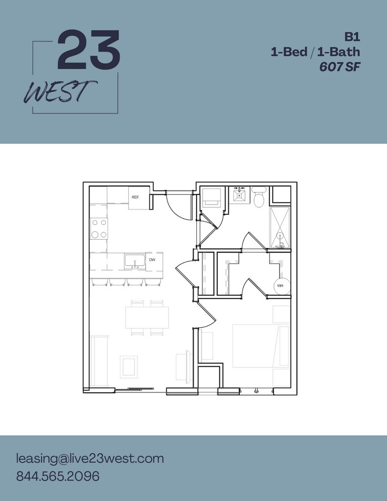 1 Dormitorio, 1 Baño, 607 pies²Disponible AhoraGalería del Modelo
