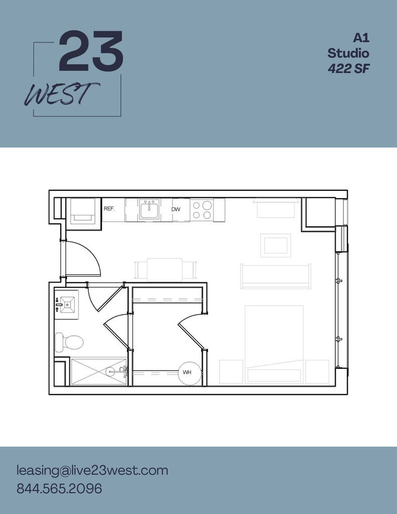 Modelo de apartamento: A1 - StudioDesde $1,395Estudio, 1 Baño, 422 sq ftDisponible Ahora![]()