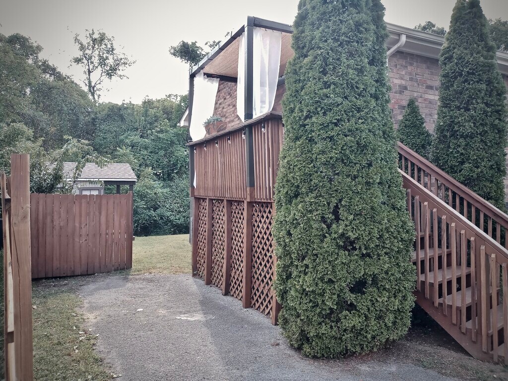 2314 Cooper Terrace, Nashville TN. 37216 Updated/Renovated Duplex. 3 entertaining areas outside with the Deck/Pergola, Flex Shed and Back Patio.. This space backs up to the protected Shelby Bottom's woods/park and Greenway Systems. 2-Bdrms, 1-Full Bath, Large eat-in Kitchen with loads of cabinets.. Laundry room with new washer/dryer, Living Rm. Linen Closets, Large Bdrm Closets, Coat Closet and attached outside storage closet. This unit is non-smoking only, sorry no dogs but we do allow for up to 2 cats with the one time non refundable cat deposit. ((Cat Deposit is $350.)) (((((((((Special Note)))))))))) This is (NOT) a furnished apt. It was previously (STAGED) to suggest size, scale of furnishings that will fit comfortably within the unit as well as suggest layout options.. With that being said some things do remain with the unit. (1)- All new storage baskets on all shelving throughout. (2)- New paneled window treatments, curtain rods and blinds. (3)- Built-In Entertainment center in living room. (4)- Desk Nooks with baskets/chairs in ea. bdrm. (5) -All patio/yard lights on deck/flex shed and patio (6)- Fire Pit (7)-Deck/Pergola Outdoor curtains and 2 metal bar stools. (8)- 4-sets of new towels in the bath (9)- New shower curtain/liner/bath mat/ trash basket/ shower caddy/shower rod/hooks/ baskets. (10)- Cutting board set and Stainless Steel trashcan in Kitchen. (11)- New Laundry Curtain panels/ curtain rod/ laundry baskets/ ironing mat. (12)- Portable HVAC unit in Flex Shed/ Heat/Air, window blinds.