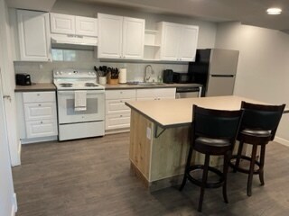 Beautiful Fully Furnished 2-Bedroom Basement Apartment with Private Entrance. This spacious 1,200 sq. ft. apartment offers comfort, convenience, and privacy in a fully furnished setting. Featuring two bedrooms, each furnished with a full-size bed, dresser, and nightstand, and a full bathroom, this home is ready for move-in. The private entrance leads into a welcoming living space with an electric reclining couch, smart TV, and cozy gas fireplace. The full kitchen is equipped with a dishwasher, island and all the essentials, and there's an in-home washer and dryer for your convenience. Enjoy the outdoors from your private deck overlooking a 1/2 acre yard, perfect for relaxing or entertaining. This apartment combines modern amenities with a comfortable, turnkey living experience ideal for anyone seeking a hassle-free home. All utilities, including WiFi are included in the rental fee. Available September 1, 2025 this apartment home is offered with a one-year lease. First and last month's rent, along with a $1,000 security deposit, are required at move-in. Smoking is not permitted inside the home; however, we are 420-friendly outdoors on the deck. We ask that you be considerate of other residents. Street parking is available for the tenants convenience.