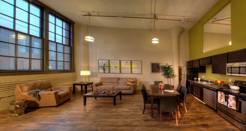 Los apartamentos más grandes en el 216. Ven a visitarnos en el recientemente restaurado edificio de almacenes de estilo antiguo, que combina el encanto histórico con modernas comodidades.