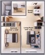 1 Dormitorio, 1 Baño, 580 pies²Galería del Modelo
