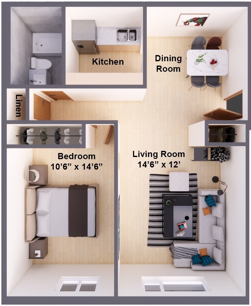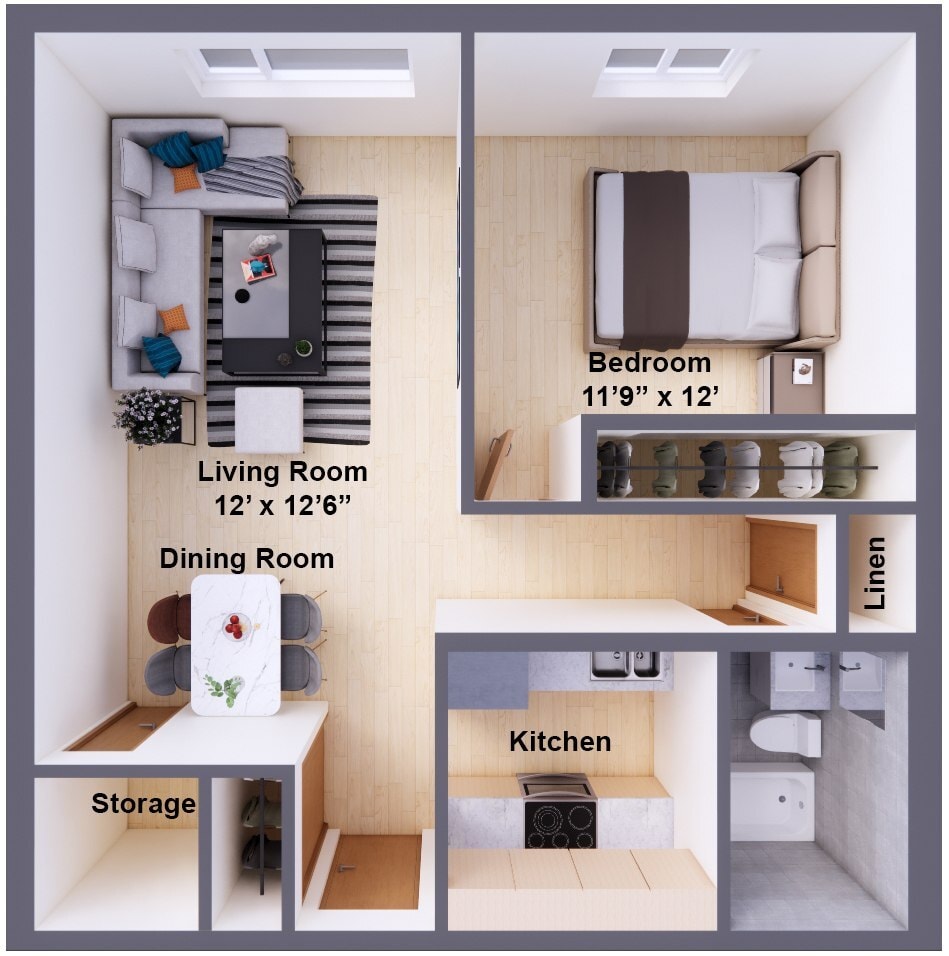 2331 Pembina - 1 Bedroom, 1 Bathroom - Layout B - Plano 1 2331 Pembina - 1 Bedroom, 1 Bathroom - Layout D