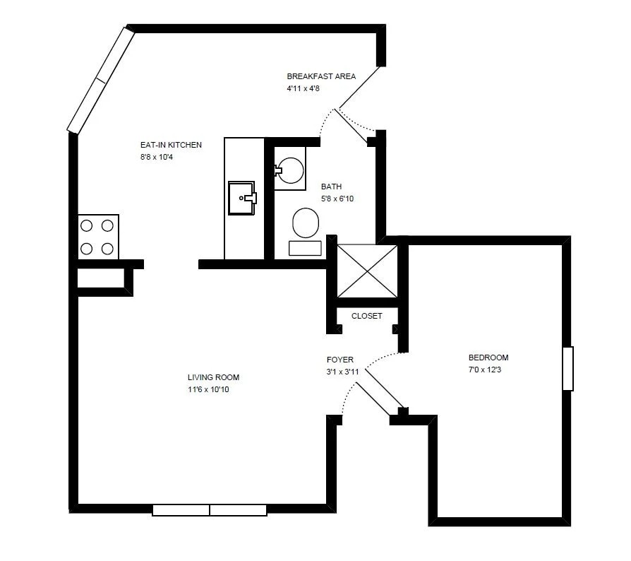 1 Dormitorio, 1 Baño, 700 pies²Galería del Modelo