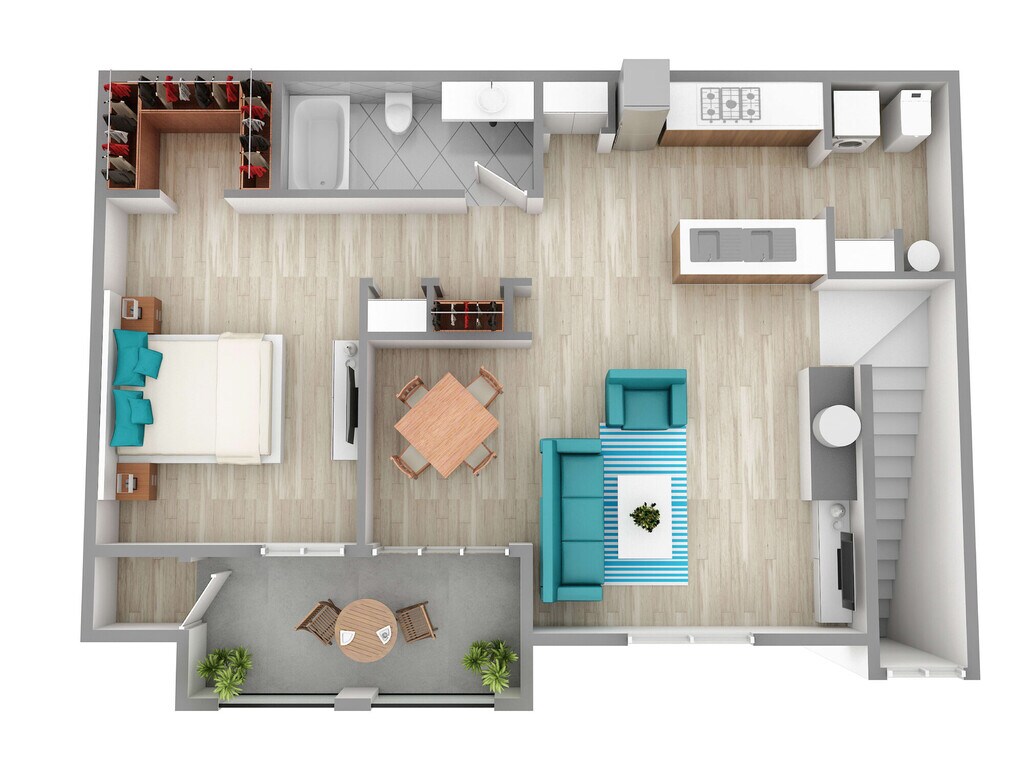 1 Dormitorio, 1 Baño, 847 pies²Disponible AhoraGalería del Modelo