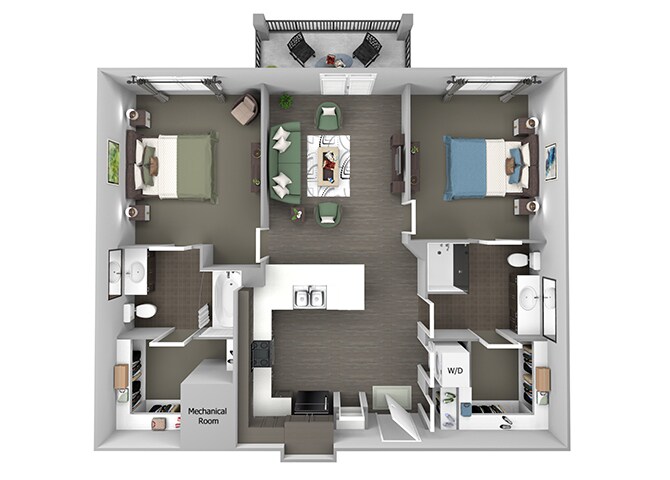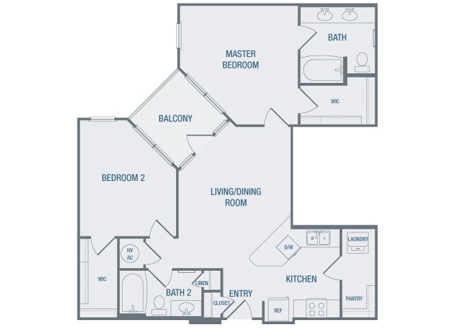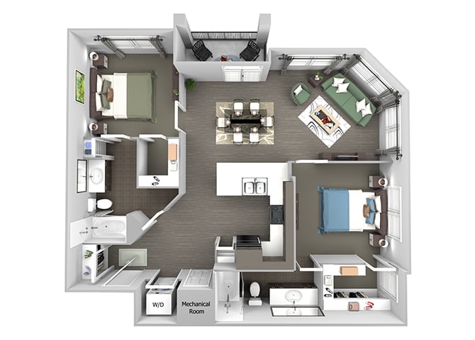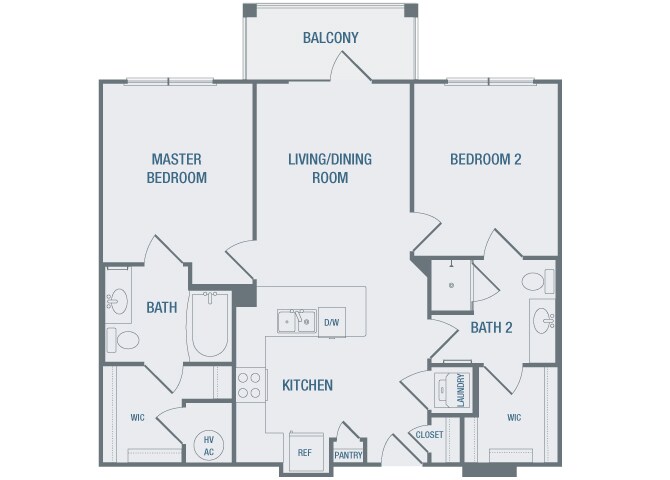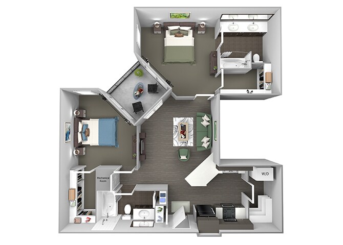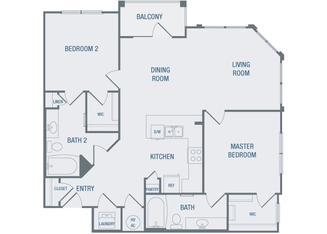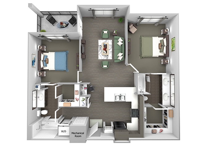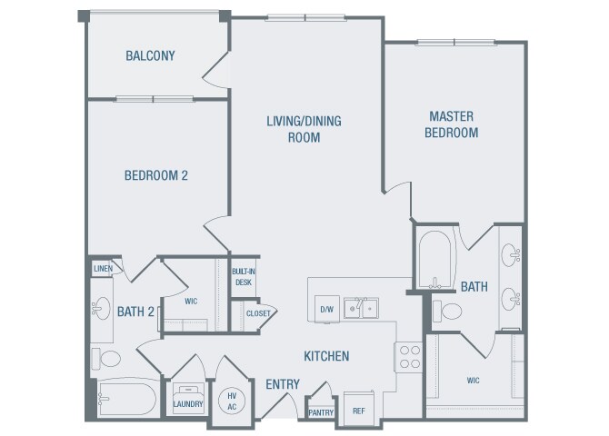 Modelo de apartamento: B2Desde $1,8692 Dormitorios, 2 Baños, 1104 sq ftDisponible Ahora![]()