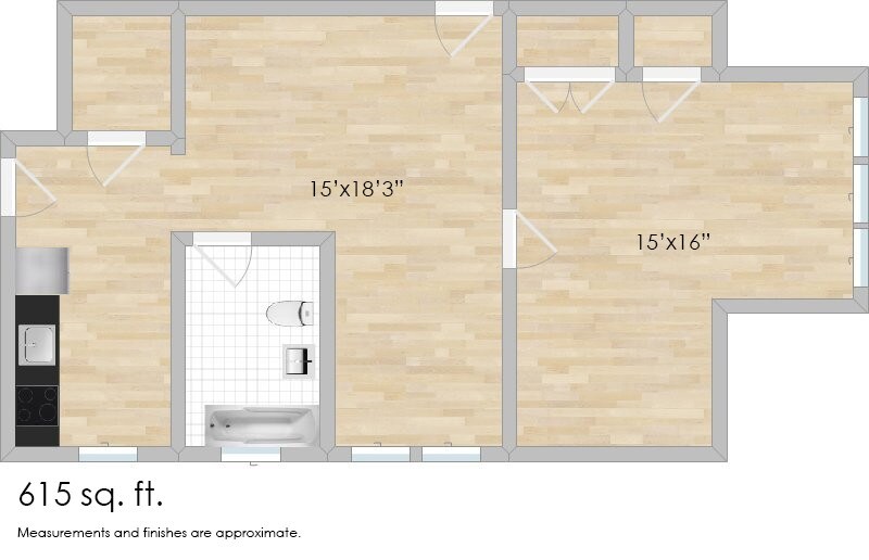 1 Dormitorio, 1 Baño, 615 pies²Galería del Modelo
