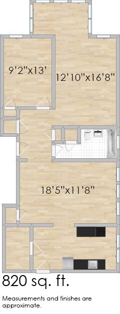 Modelo de apartamento: 26 Washington A & B & 30 Washington A & B1 Dormitorio, 1 Baño, 845 sq ftDisponible December 31, 2025![]()