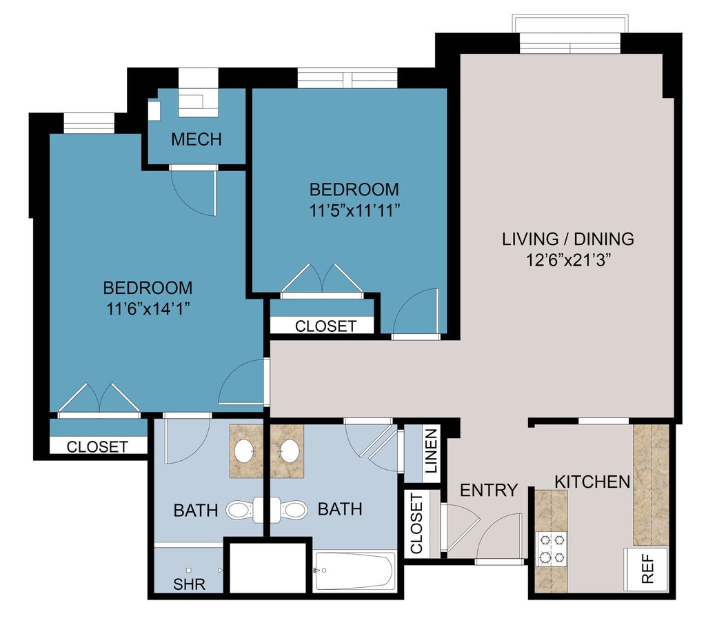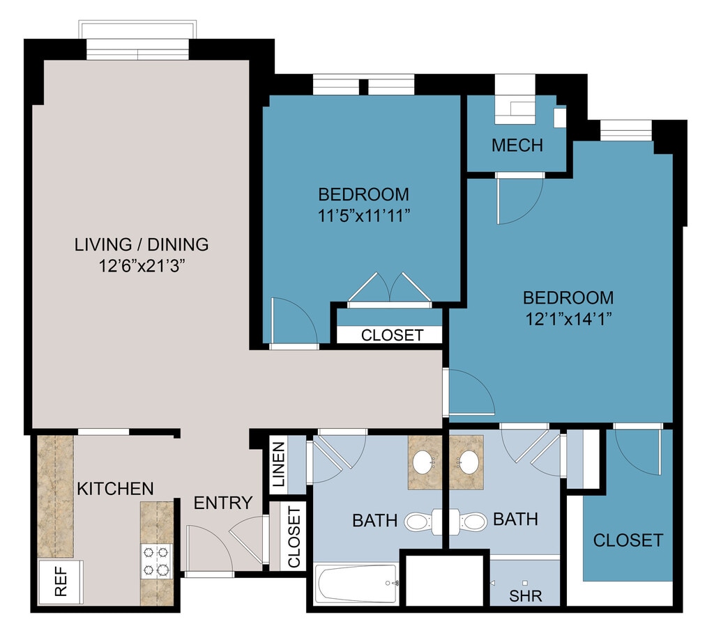 2 Dormitorios, 2 Baños, 1213 pies²Más CargosDisponible AhoraEl más grandeEsta opción tiene las unidades más grandes para este modeloGalería del Modelo