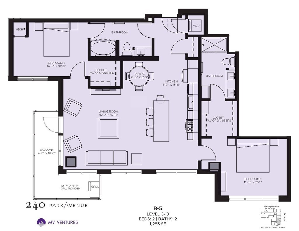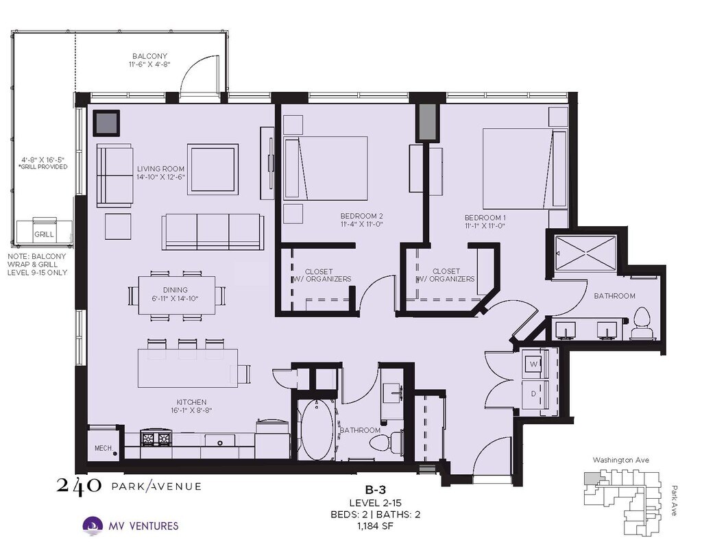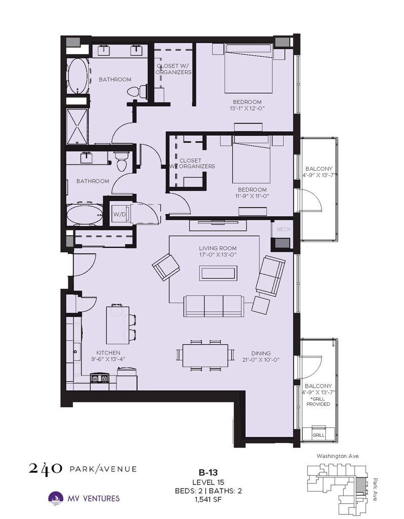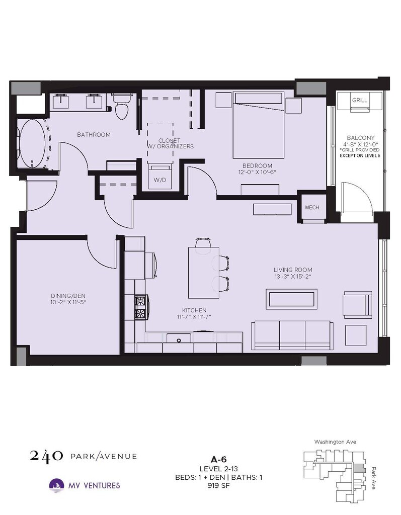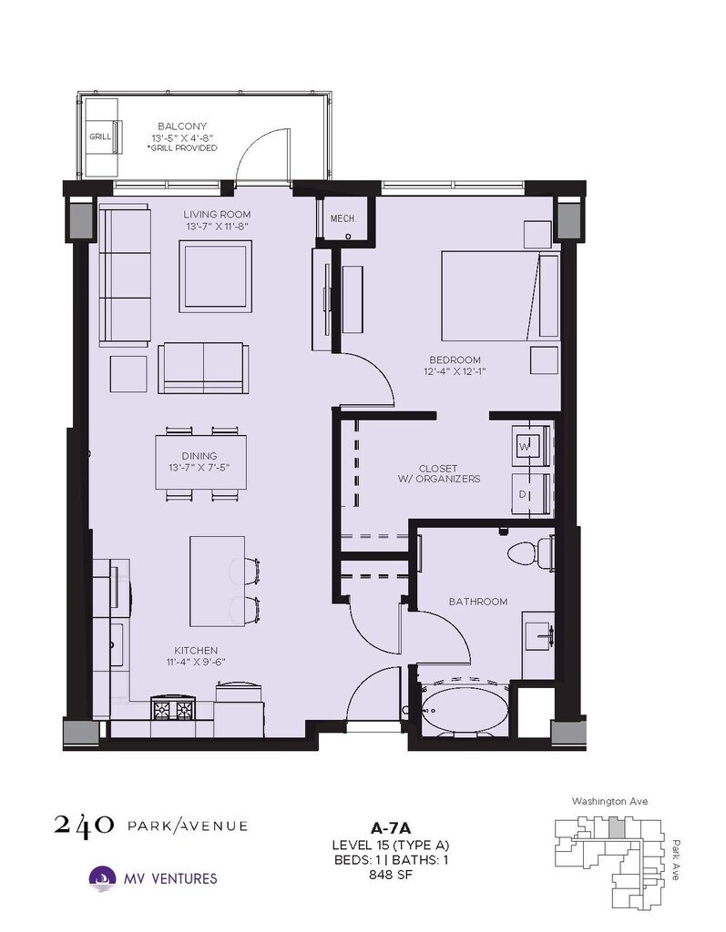Experimenta el lujo moderno en 240 Park Avenue. Estamos redefiniendo el estilo de vida urbano, brindando una comunidad vibrante y dinámica para que los residentes disfruten de unidades espaciosas y lujosas que ofrecen vistas panorámicas de la ciudad, el estadio y la ribera y comodidades incomparables, así como beneficios exclusivos para residentes. A una caminata de distancia del sistema de vías elevadas del centro de Minneapolis y el distrito comercial central, el río Mississippi, restaurantes de primer nivel, cervecerías, supermercados y tiendas minoristas, así como lugares de entretenimiento de última generación que incluyen el U.S.Bank Stadium, el Armory y el Guthrie Theatre. Centro de fitness a gran escala con equipos de última generación y bicicletas de spinning, un estudio de yoga con clases de fitness a pedido, piscina cubierta reglamentaria, bañera de hidromasaje cubierta, sauna y baño de vapor, simulador de golf/deportes, áreas de descanso en la azotea interior y exterior, spa para mascotas y más... Da un paso en la dirección correcta y reserva uno de nuestros apartamentos de lujo. Estos son apartamentos más grandes de lo que es común en el mercado con acabados de calidad de condominio y abundante luz natural. Además, se instalarán parrillas de gas natural Weber en el patio del apartamento para mejorar el disfrute de las resplandecientes vistas del paisaje urbano.