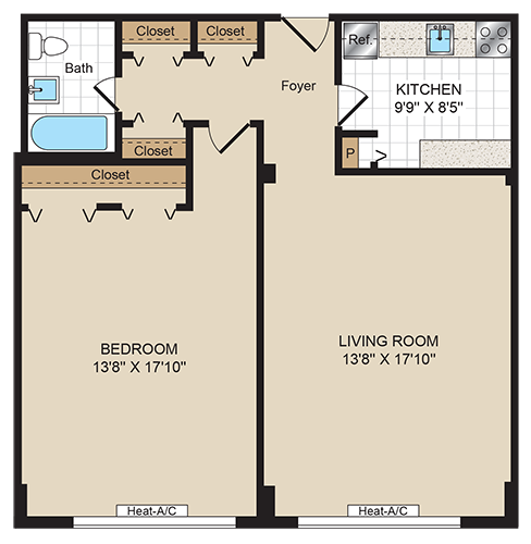 One Bedroom 24-1H - Plano 1 Unidad de apartamento: 105Modelo de apartamento: One Bedroom 24-1H$2,3501 Dormitorio, 1 Baño, 500 sq ftDisponible AhoraPlanosFotos![]()