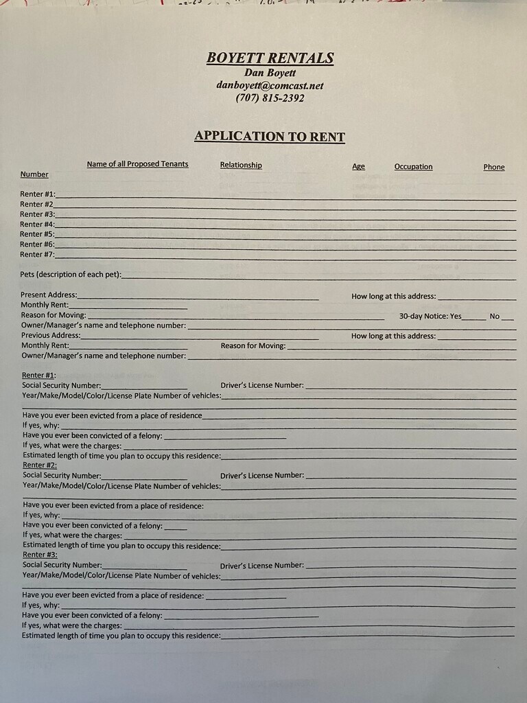 $2,475 rent monthly, $2,475 deposit. Two bedroom, 1.5 bath, upstairs apartment in a fourplex. New flooring, new kitchen, new paint. One carport and dedicated lot parking. No smoking, no pets. Owner pays water. APPLICATION FOUND IN PHOTOS. More photos to come soon. Contact Dan, info in photos Available October 1 2467 Colina Ct Napa, CA 94558