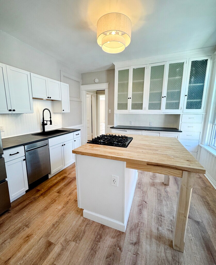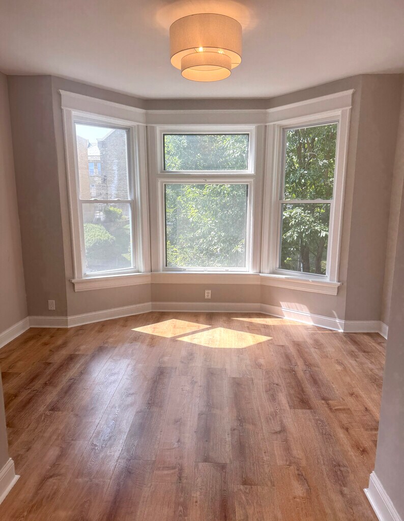 Large and bright 2 bedroom + Den/office - 1 bath unit with in-unit laundry. 2 parking spaces included (1 garage parking space and one surface parking space.) Eat-in kitchen with Stainless steel appliances including refrigerator, gas stove, dishwasher and garbage disposal. Renovated bath with glass shower. Five blocks from Lake Michigan and two blocks from Whole Foods. $1800/month with 1month security deposit. Available October 1st.