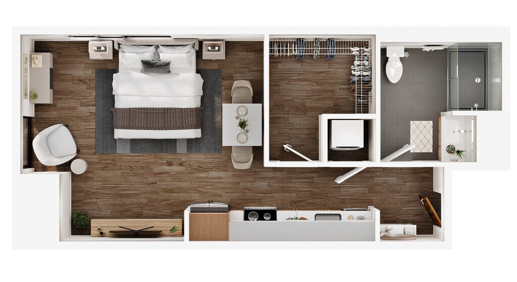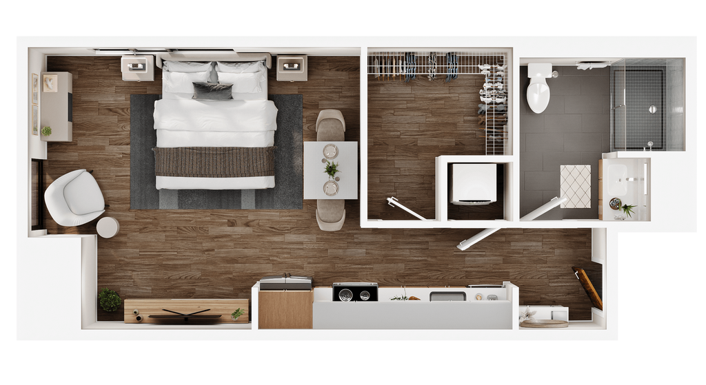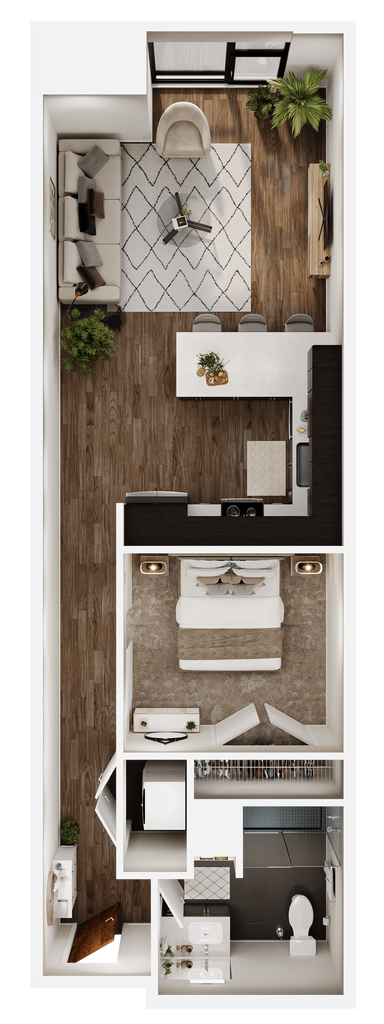 Estudio, 1 Baño, 633 pies²Disponible AhoraGalería del Modelo