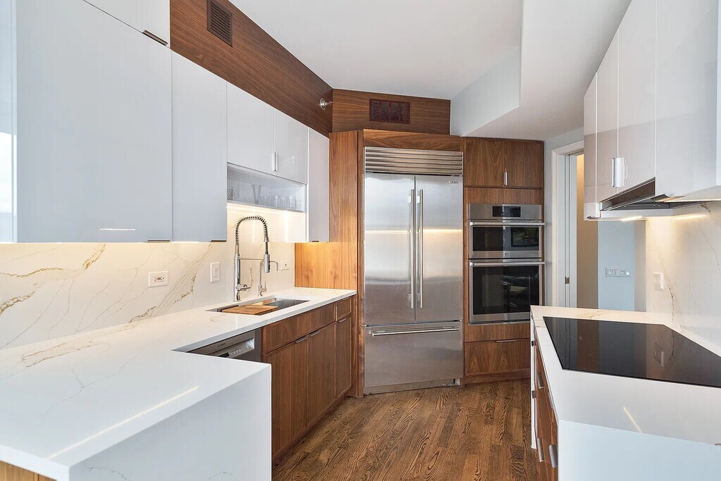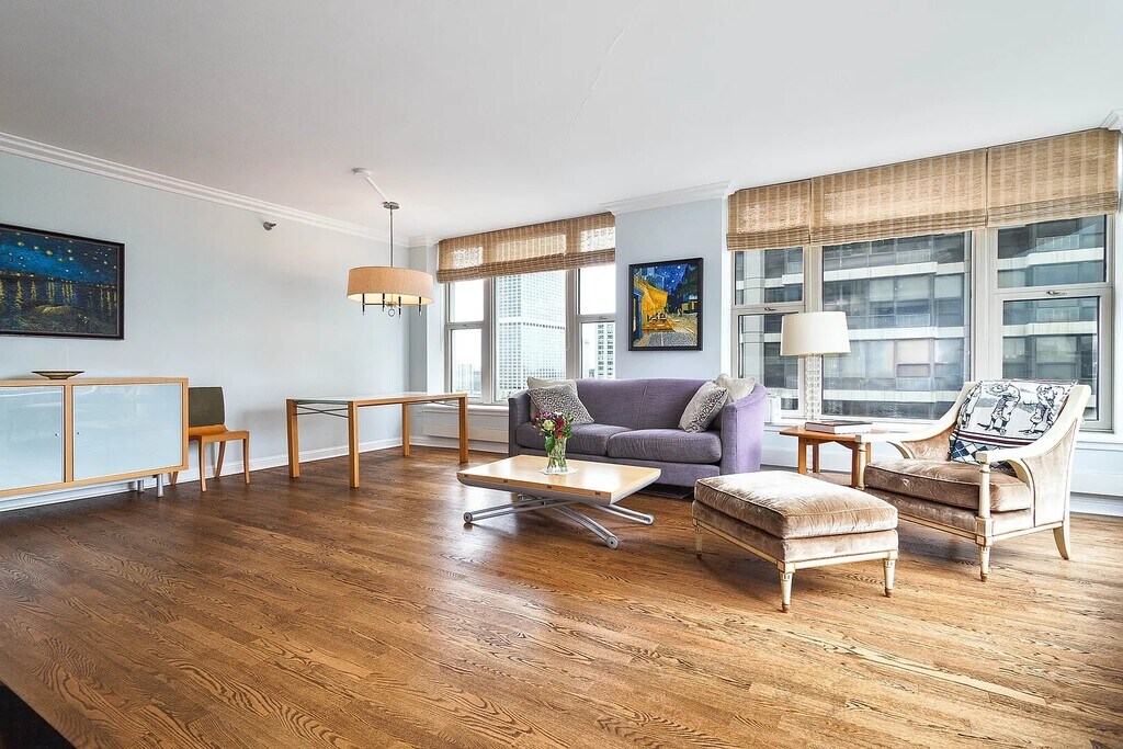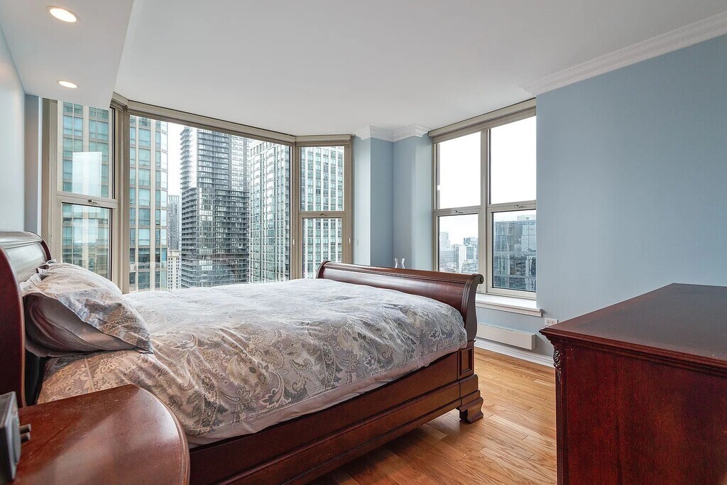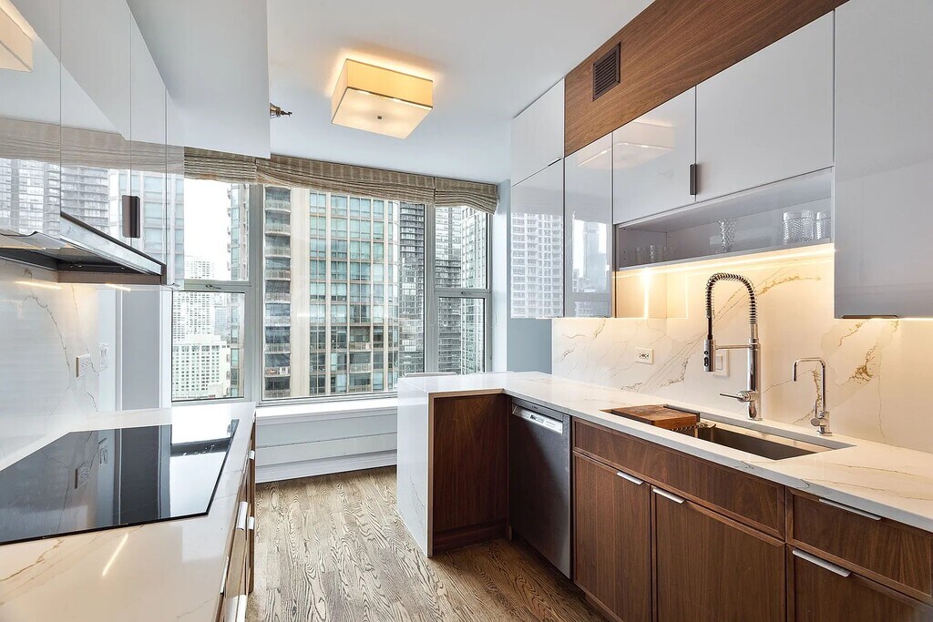 Live in the Cathedral District in River North. Spacious 28th floor 2-bedroom, 2-bathroom residence of the Fordham. This upgraded home features many high-end improvements, including a 2023 designer kitchen remodel with top-of-the-line appliances: sub-zero refrigerator, LG studio double wall oven with air fryer, thermador induction cooktop, and Bosch dishwasher. The kitchen is finished with Calacatta Gold quartz counter tops and refinished oak floors, setting the tone for luxury throughout. Additional updates include fresh paint, new HVAC components with programmable thermostats, and red oak bedroom flooring. This residents offers unobstructed southern views, abundant natural light, and the quiet elegance of city living. The Fordham is a full-service building offering premium amenities including state of the art fitness center, private movie theater. Walk to Northwestern Hospital, Holy name Catherdral, Whole Foods , Trader Joe's and Michigan Avenue. One indoor parking spot available for additional monthly fee. NO SMOKING, VAPING, or Cannabis.