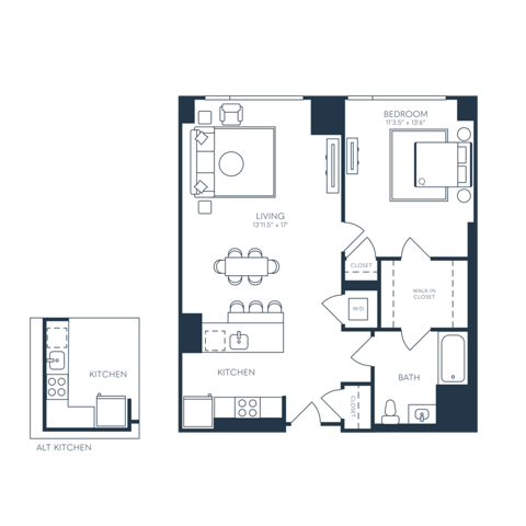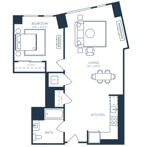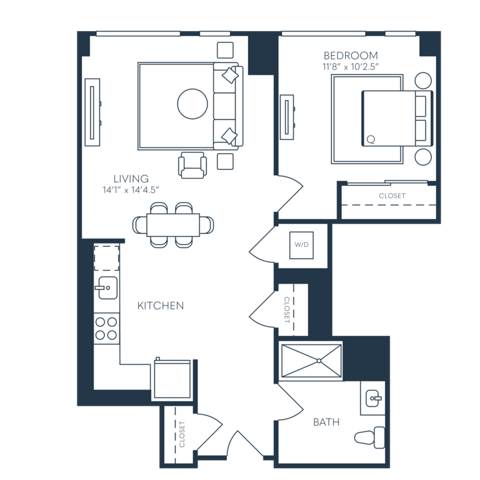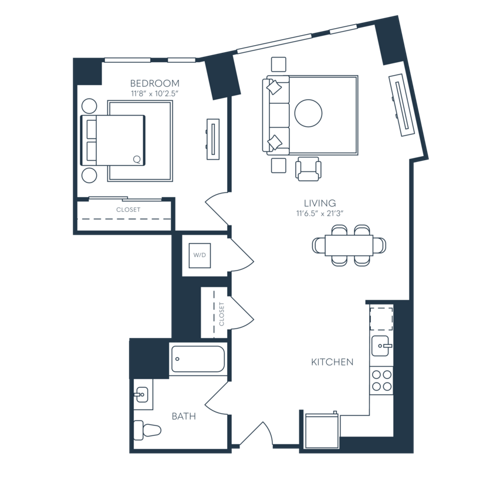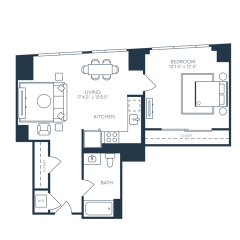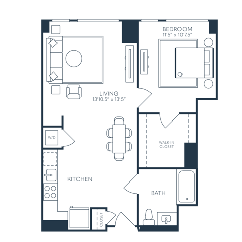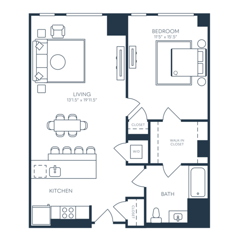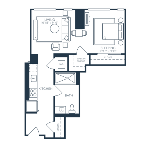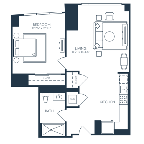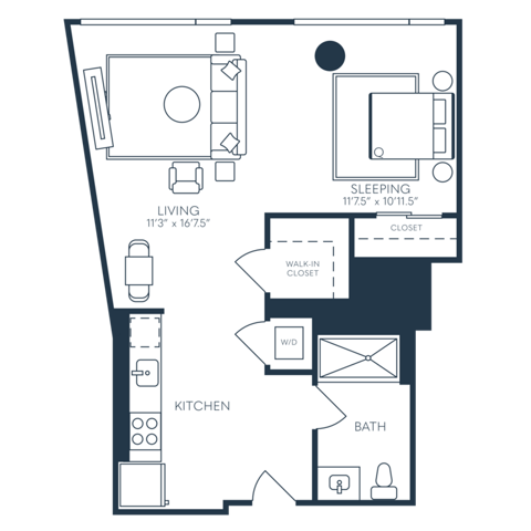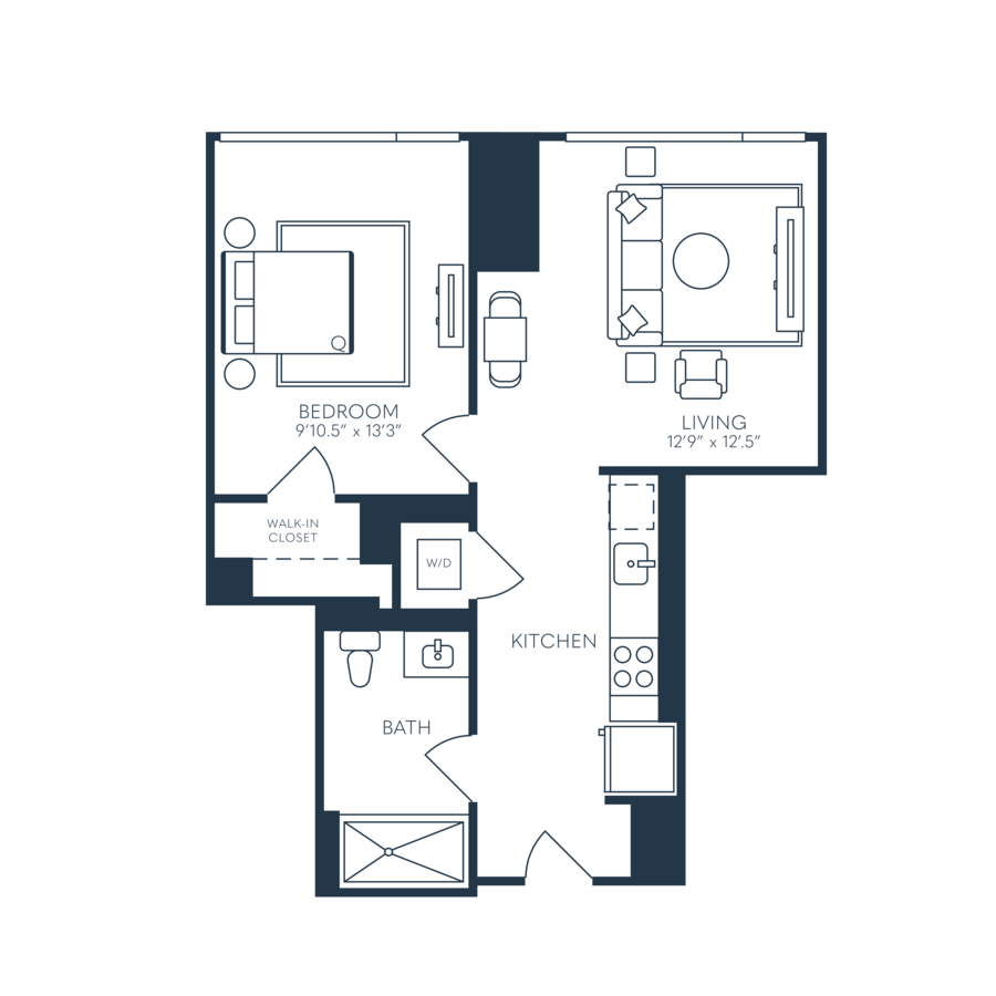 Estudio, 1 Baño, 517 pies²Disponible AhoraGalería del Modelo