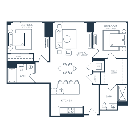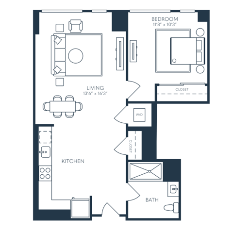 Estudio, 1 Baño, 487 pies²Disponible AhoraGalería del Modelo