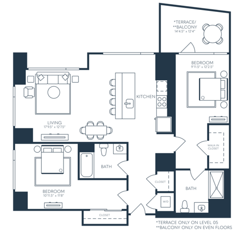 S4 - Plano 1 Unidad de apartamento: 1409Modelo de apartamento: S4$2,760Estudio, 1 Baño, 487 sq ftDisponible AhoraPlano: S5