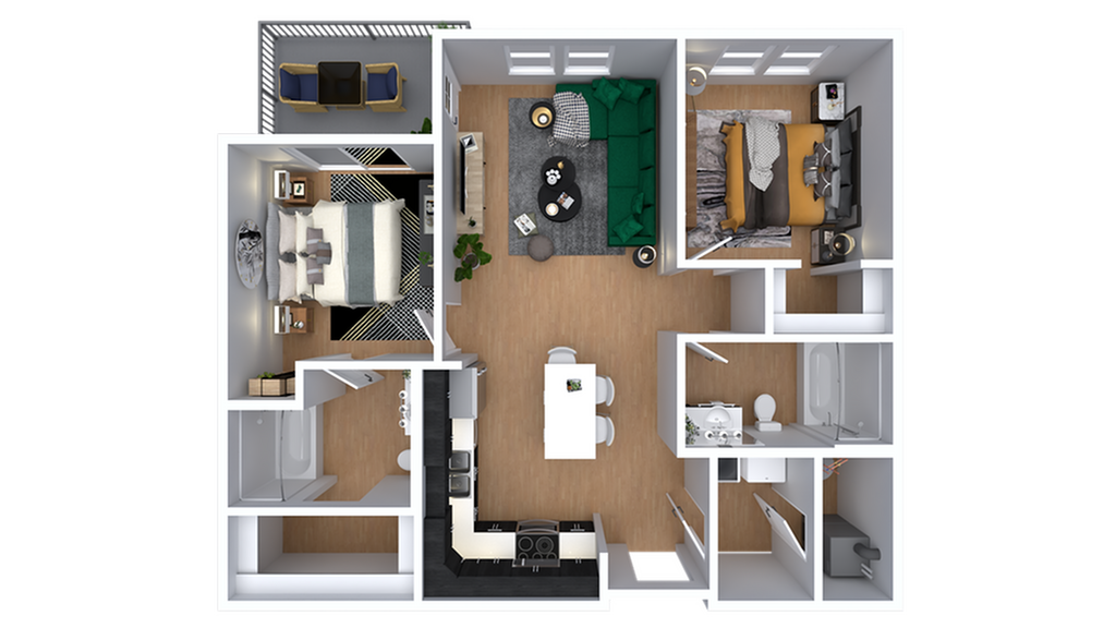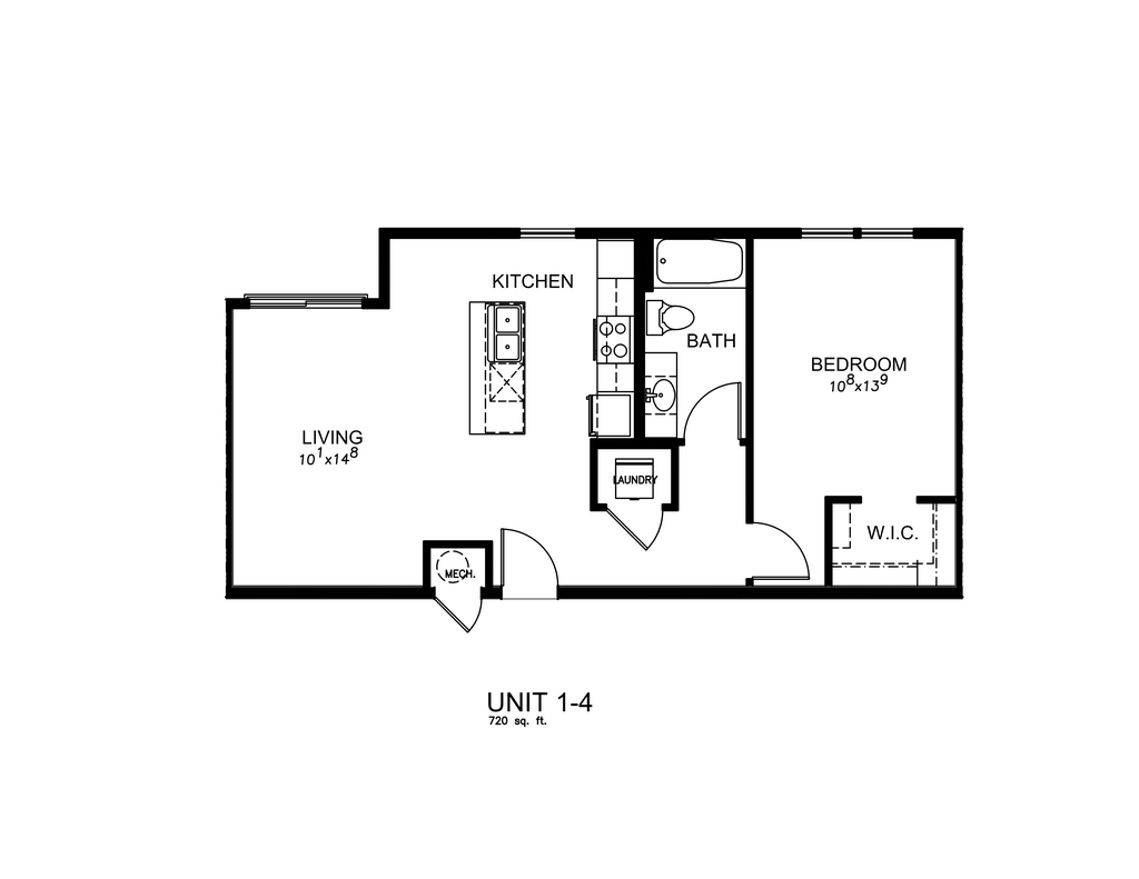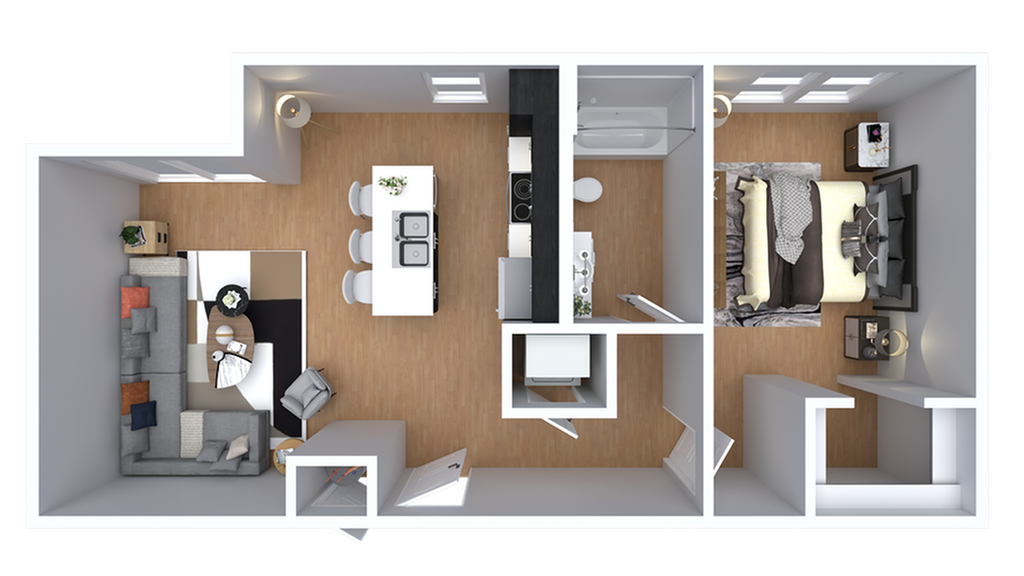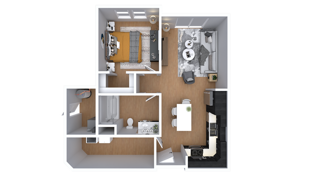 1 Dormitorio, 1 Baño, 720 pies²Disponible AhoraGalería del Modelo