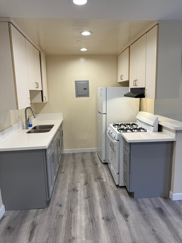 Beautifully remodeled unit featuring a brand-new countertop, hardwood floors, ceiling fans, stove, refrigerator, and AC unit. Located in a gated community with security cameras, on-site laundry facilities, and one designated parking space. Conveniently within walking distance to public transportation and shopping, and just 10 minutes from downtown Los Angeles.please contact if you have any questions or you like to see the unit. Please text the number first for faster response. Thank you