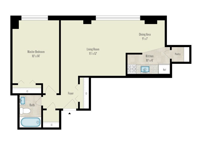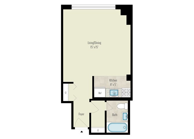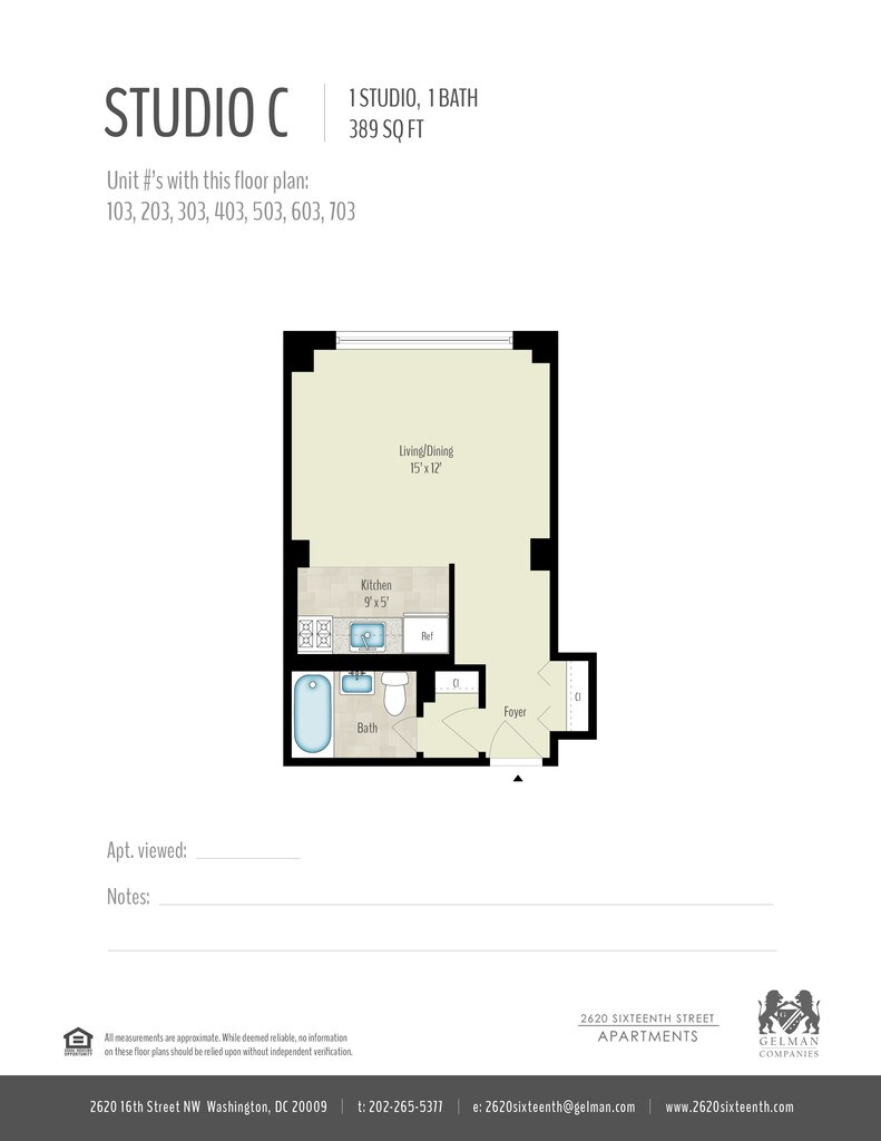 Estudio, 1 Baño, 389-457 pies²Disponible AhoraGalería del Modelo