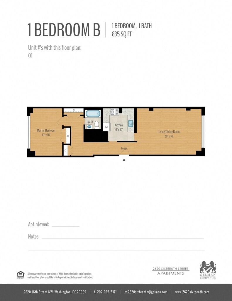 1 Bedroom - Plano 2 Unidad de apartamento: 0001Modelo de apartamento: 1 Bedroom$2,4001 Dormitorio, 1 Baño, 835 sq ftDisponible Ahora![]()
