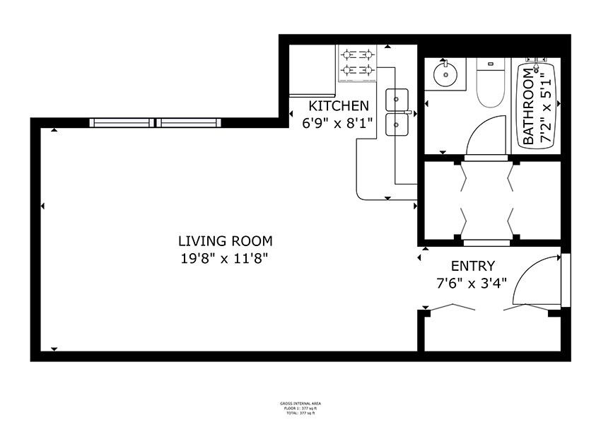 Estudio, 1 Baño, 346-377 pies²Galería del Modelo