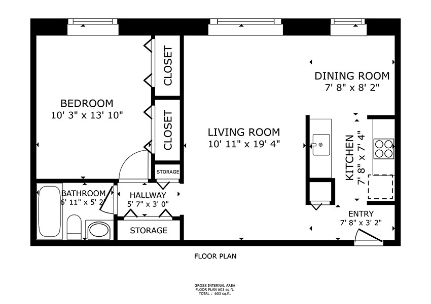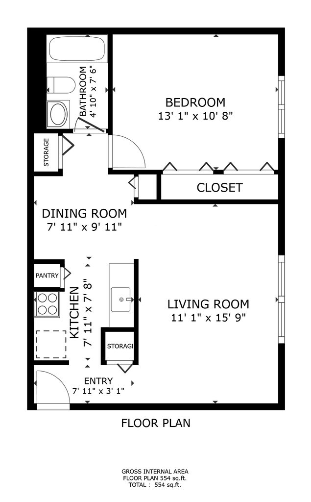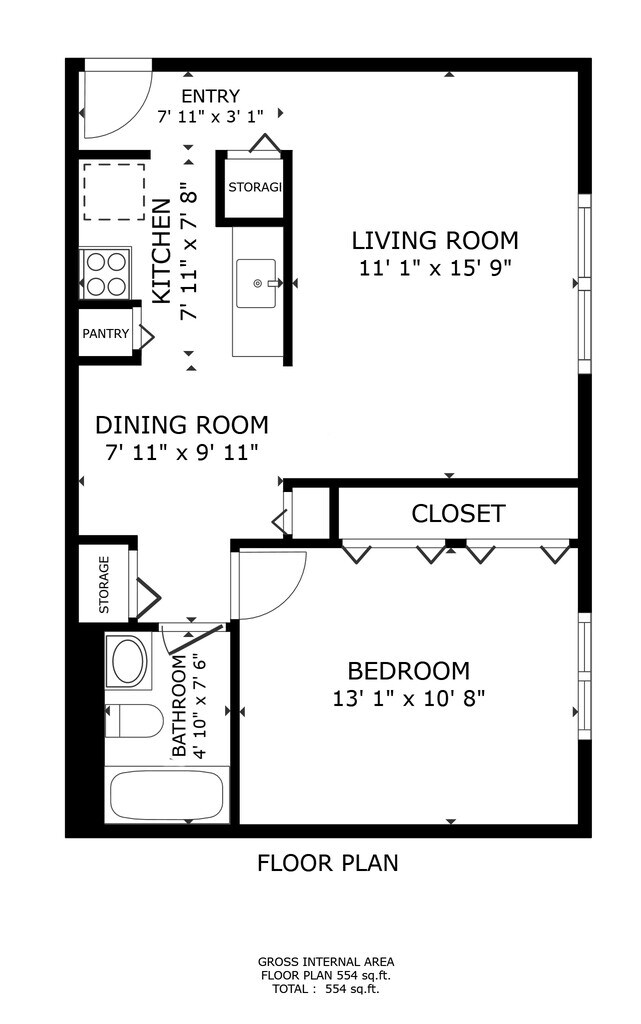 1 Dormitorio, 1 Baño, 595 pies²Galería del Modelo