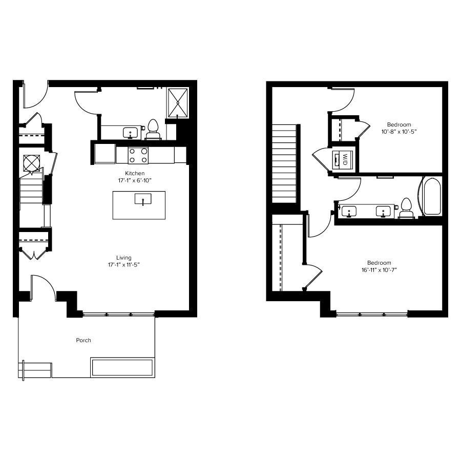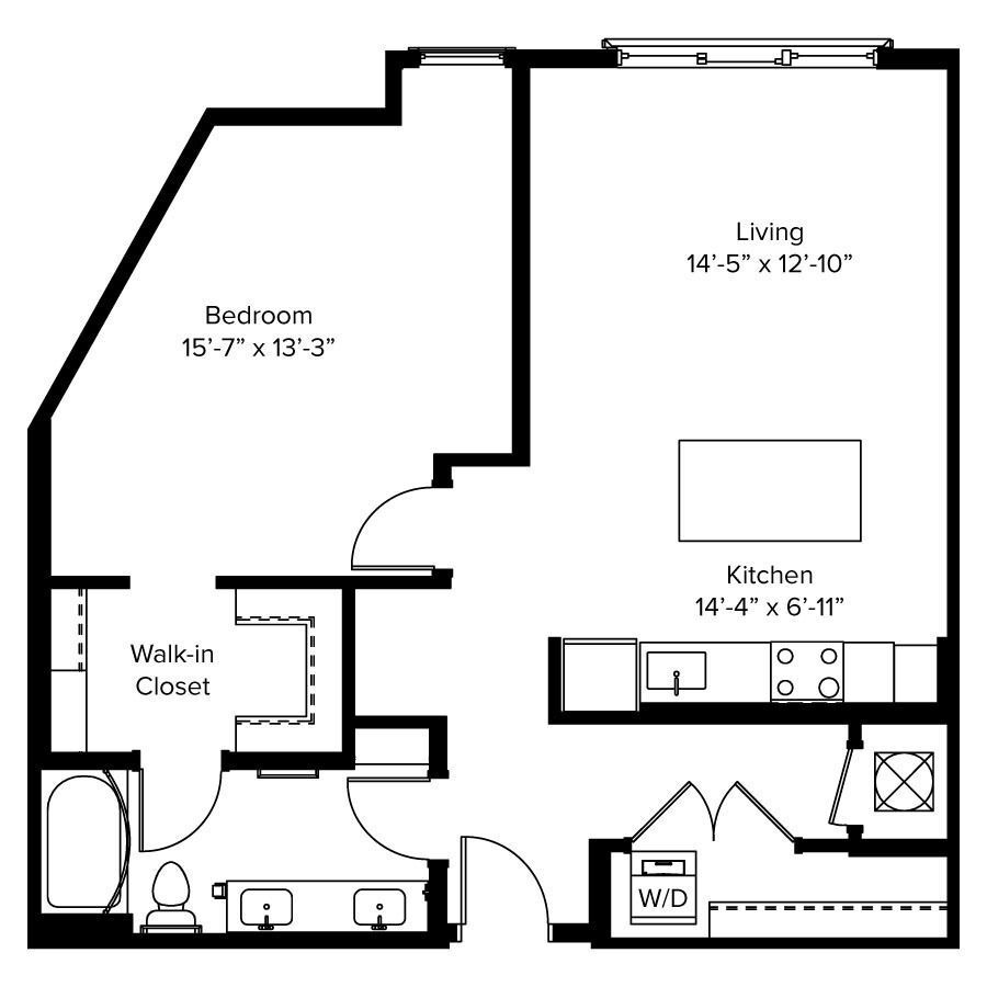 1 Dormitorio, 1 Baño, 903-910 pies²Galería del Modelo