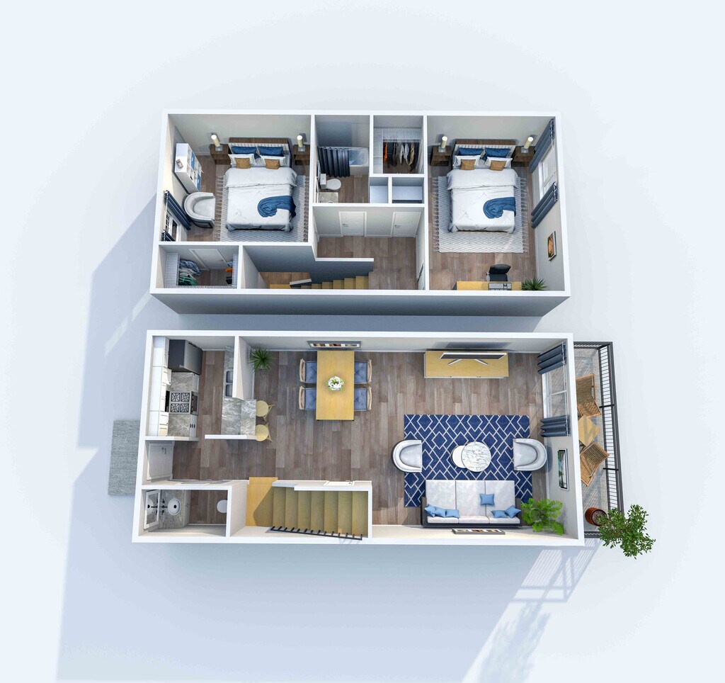 2 Dormitorios, 1.5 Baños, 874 pies²Disponible AhoraGalería del Modelo