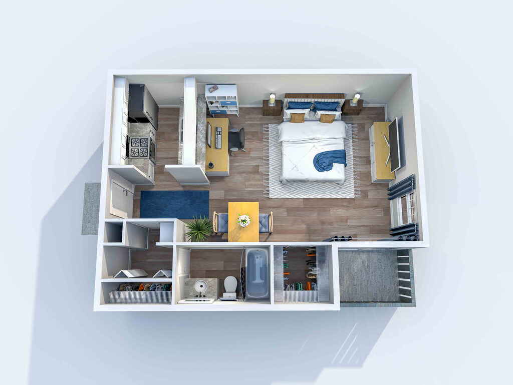Modelo de apartamento: Studio E2Estudio, 1 Baño, 475 sq ftDisponible Ahora![]()