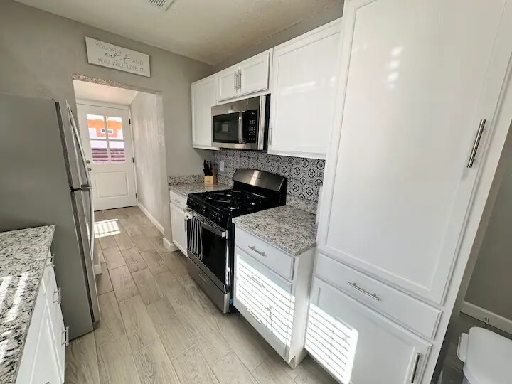Explore the diverse accommodations at Casa Memphis, each thoughtfully renovated to offer distinct advantages! Unit 1: Experience the blend of modern design and homely comfort in our main unit. It boasts a spacious living room, dining area, well-equipped kitchen, and large bedroom with extensive closet space. Additional features include private parking, a dedicated laundry room, and a workspace, making it ideal for those who value space and convenience. Unit 2: Our side unit offers a unique basement design with functional living spaces. It includes a cozy bedroom, living room with a window, a compact yet functional kitchen, and a spacious bathroom. The convenience of in-unit stackable washers and dryers, along with street parking and a comfortable workspace, makes it perfect for those seeking privacy and efficiency. Unit 3: The guest house is a luxurious studio that merges living and sleeping areas into a seamless design. It features a queen-size bed, a snug living room, and a built-in kitchen. Enjoy the benefits of private parking and your own laundry facilities in a setting that is ideal for singles or couples looking for style and functionality. Each unit at Casa Memphis is designed to cater to different needs and preferences, ensuring comfort, convenience, and style.