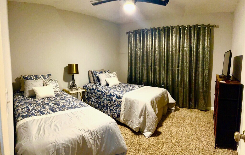Gorgeous modern home in a beautiful wooded and quiet neighborhood. Conveniently located near I-220 makes it easily accessible to Shreveport as well as Bossier City. This fabulous fully furnish rental is ideal for families, business travelers, and remote workers. With 3 spacious bedrooms, it comfortably accommodates up to 6 guests. 3 Bedrooms, 2 Bathrooms Designed for comfort and convenience with 2 queen beds, 2 twin beds, plus additional sleeping arrangements upon request. Master bedroom includes a dedicated workspace for remote work, creative projects, or quiet study and all rooms have a Smart TV for streaming your favorite shows. This home offers all the essential amenities such as AC, WiFi, all utilities included and a washing machine & dyer for a hassle-free stay. All bathrooms are well-equipped and includes a hair dryer and all essentials. Nestled in a prime location South Lakeshore Area Near Cross Lake! Enjoy a serene suburban atmosphere while remaining close to top attractions and conveniences: Shreveport Regional Airport Quick and convenient travel access Close proximity to all major hospitals Downtown Casinos Experience entertainment, nightlife, and dining Great Local Restaurants A variety of dining options nearby Cross Lake Perfect for outdoor recreation and relaxation Whether you're visiting for a short getaway or planning a long-term stay, this home is ready to make your time in Shreveport one to remember! Book now for a fantastic, comfortable, and stress-free experience!