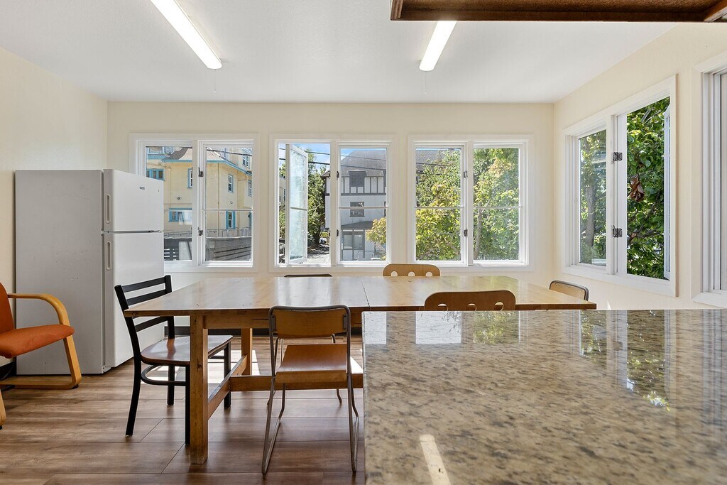 Supportive management, open space living with tons of room to roam and fully furnished shared and private rooms on 3 floors. Foster a sense of community with fellow tenants in the common areas before secluding to your own space for study and rest and relaxation. Each room comes with a twin size bed, desk, and chair. Bathrooms and kitchens are shared with floor-mates.