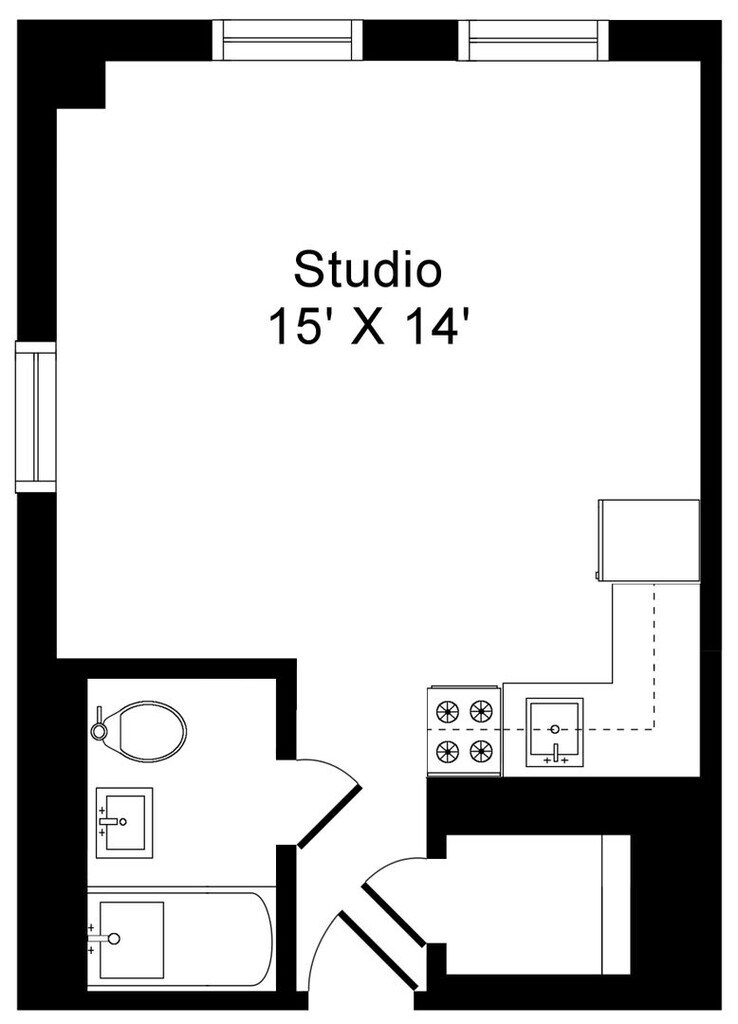 Estudio, 1 Baño, 375 pies²Disponible AhoraGalería del Modelo
