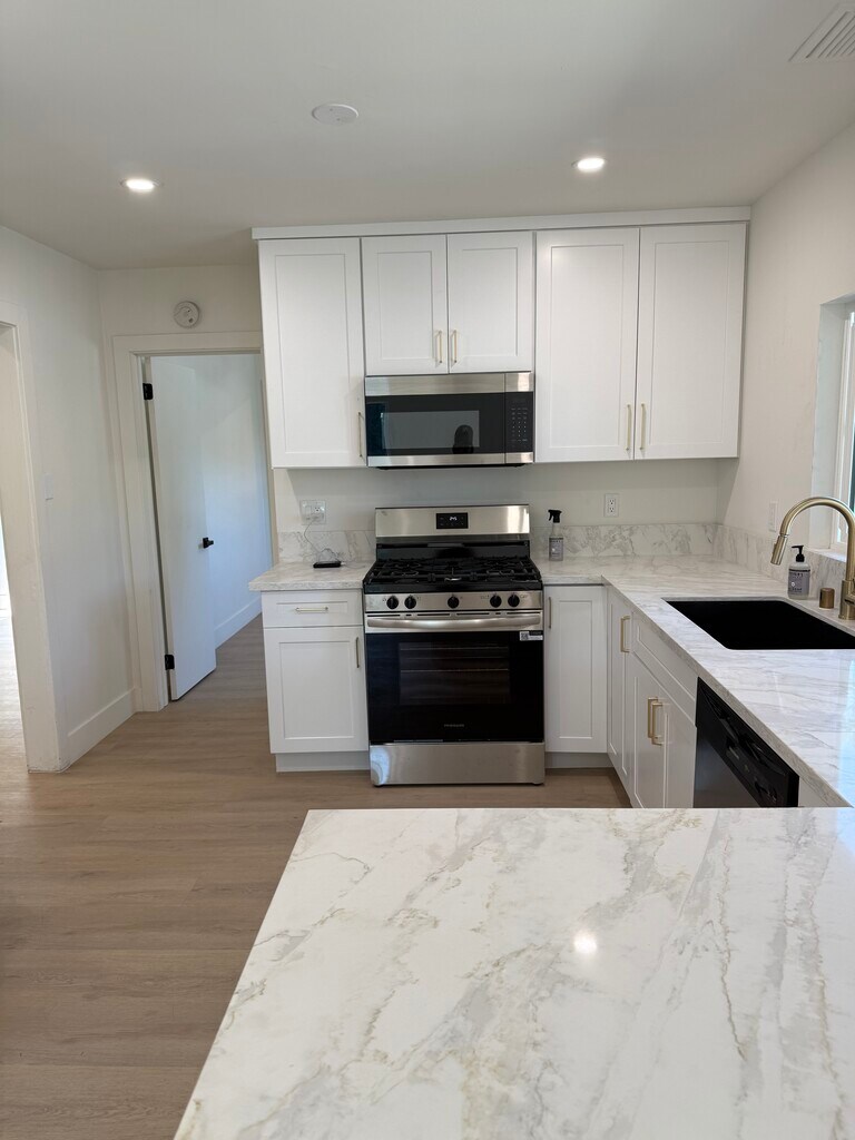 Step into this fully remodeled 3-bedroom, 2-bathroom home + 2 Garages + Private Patio in the heart of El Sereno, where classic charm meets modern luxury. Nestled in a vibrant neighborhood, this spacious 1,200 sq ft residence has been upgraded from top to bottom with no detail overlooked. Oversized lot, with two detached units each with private entry and separate street access. This home features brand new everything from the windows to the floors, kitchen, bathroom fixtures, and beyond. Whether you're cooking in the gourmet kitchen with its quartz countertops, custom cabinets, or relaxing in the luxurious new bathrooms, you'll experience the perfect blend of function and style. Key Features & Highlights: 3 Bedrooms / 2 Bathrooms 1200 sq ft of freshly remodeled living space 2 Oversized Garages ideal for your car, creative studio, or additional storage. New AC Mini Split New: Windows, floors, paint, kitchen, appliances, cabinets, quartz, recessed lights, plumbing, and more. Hillside views Indoor Laundry Hookups for added convenience. Private Off-Street Parking Pet-Friendly your furry friends are welcome