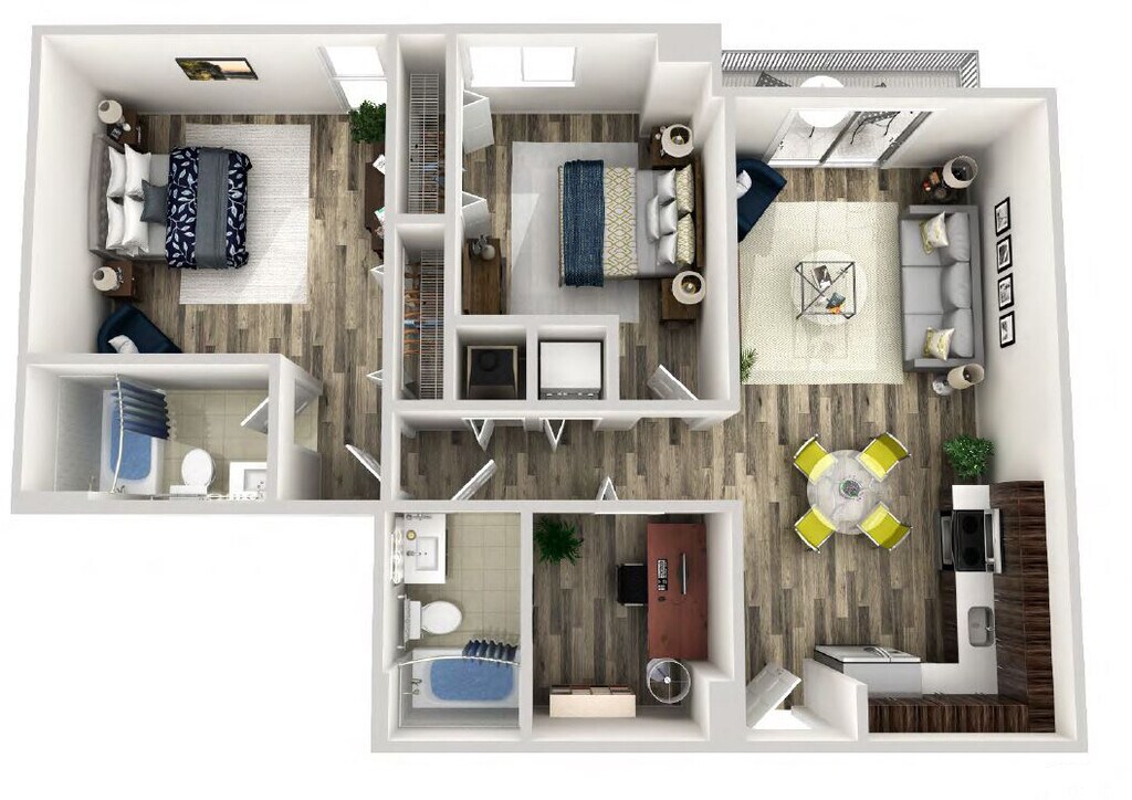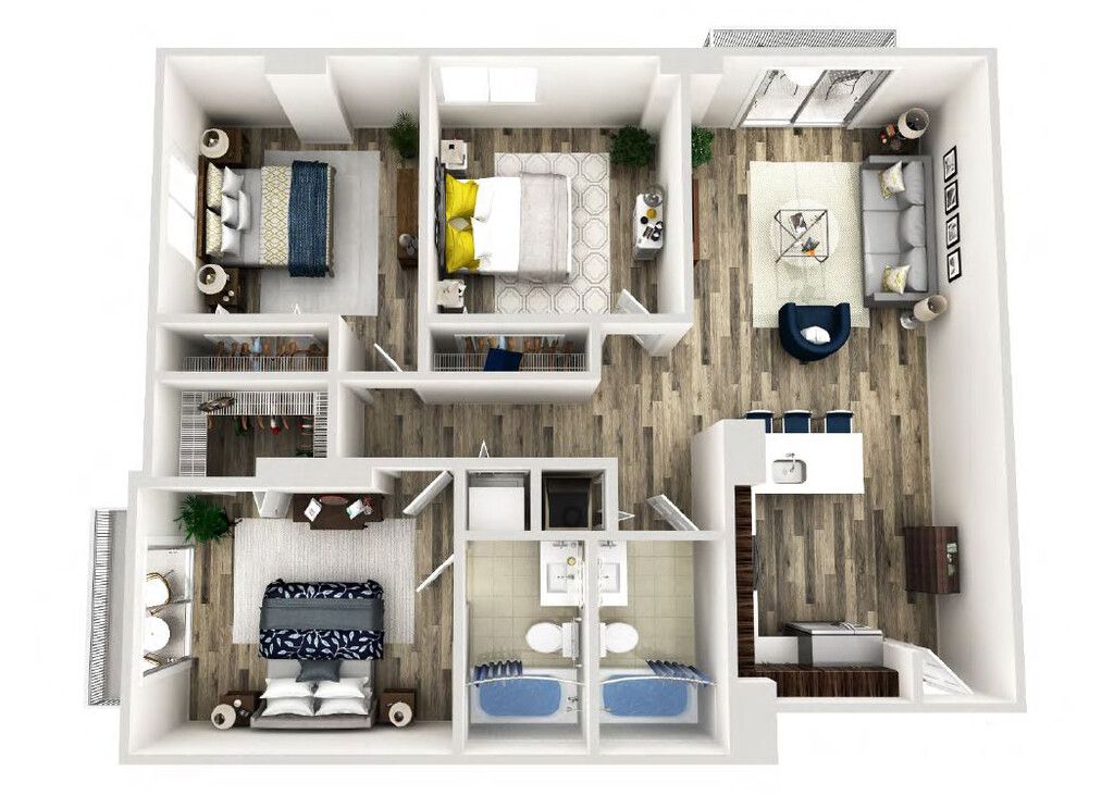 Modelo de apartamento: PalmettoDesde $2,1551 Dormitorio, 1 Baño, 650 sq ftNo Disponible![]()