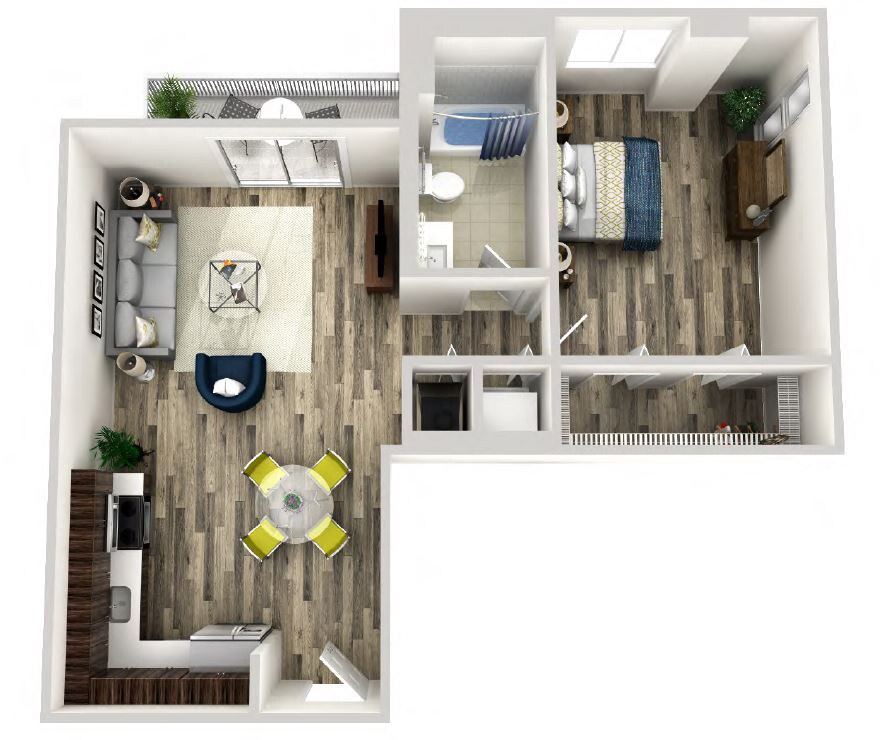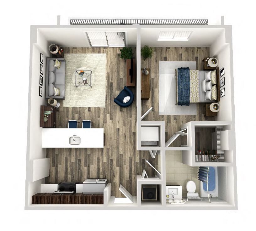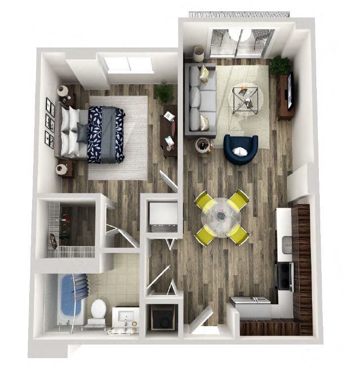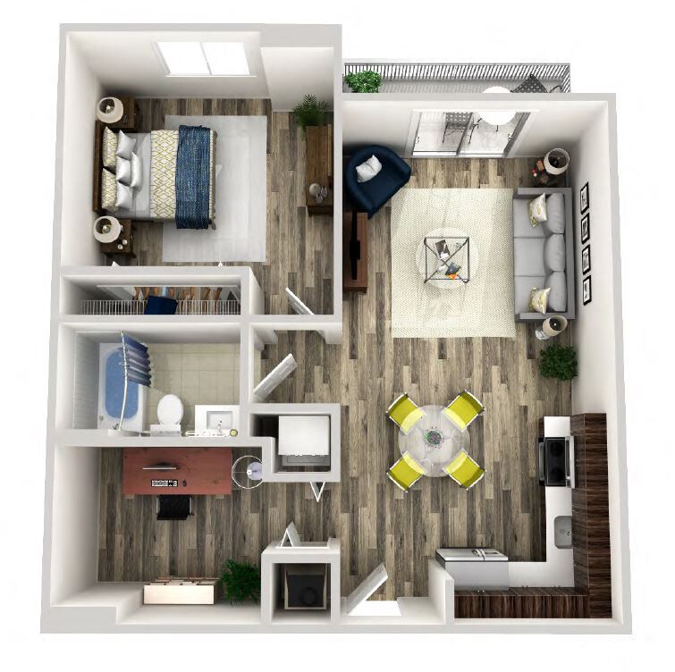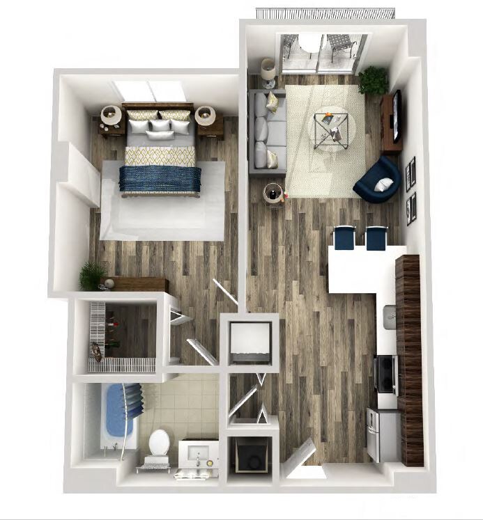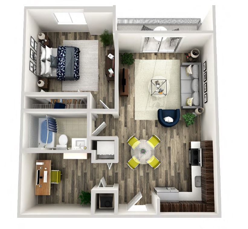 Foxtail - Plano 1 Unidad de apartamento: 418Modelo de apartamento: FoxtailDesde $2,2451 Dormitorio, 1 Baño, 640 sq ftDisponible AhoraAreca